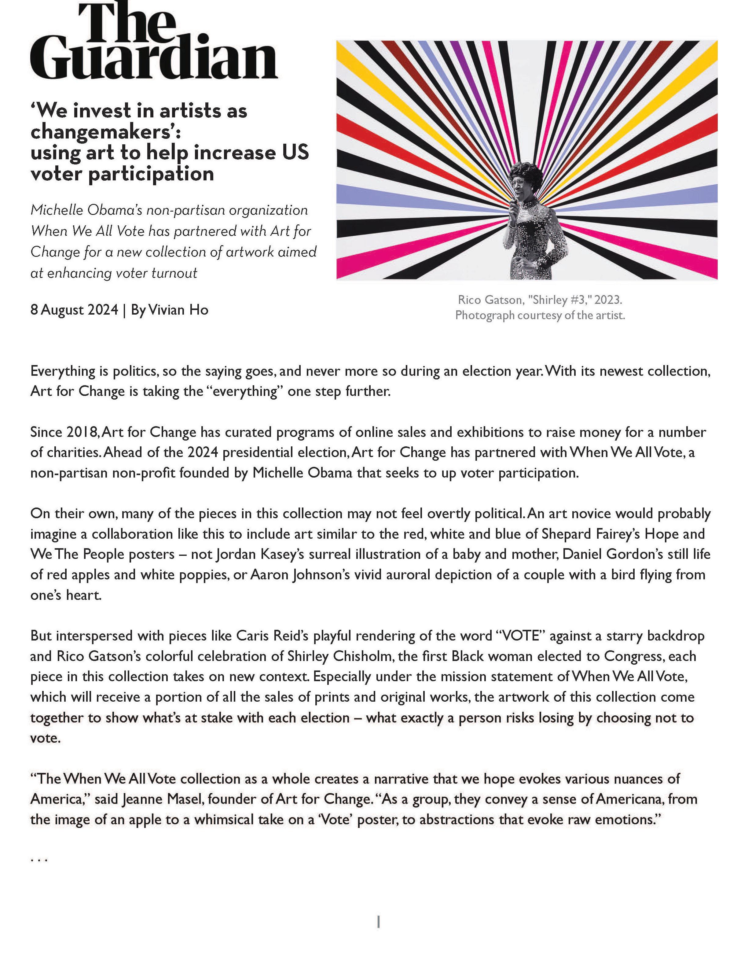 “5 YEARS: An ART FOR CHANGE Survey,” ART FOR CHANGE in collaboration with Kravets Wehby Gallery, New York, NY
