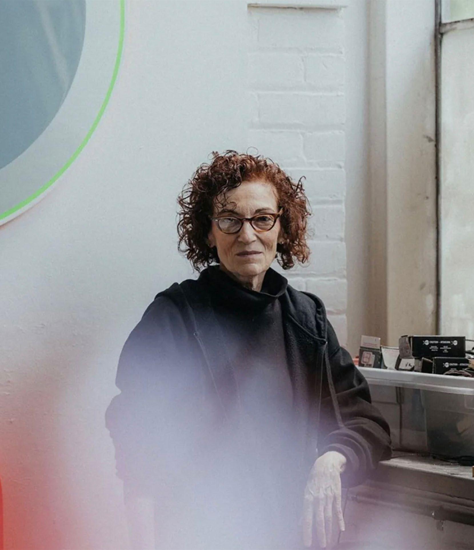 As is common in the artist’s practice, the colors of the seven pieces on display mimic the ways that drug companies use color to elicit emotional responses from the public, which she likens to the placebo effect: “If I see a red pill, I think, wow, that’s really going to be powerful. Or what happens if I look at a tiny blue pill? I think, yeah, that’s good, but two pills? That is even be er.” As the devastating effects of opioids have become painfully visible, Fishman’s works have only grown in relevance. The overturning of Roe vs. Wade has also brought oral mifepristone—otherwise known as the “abortion pill”—back into national conversation. “I thought I would let go of this,” the artist admits, “but our culture won’t let me.”