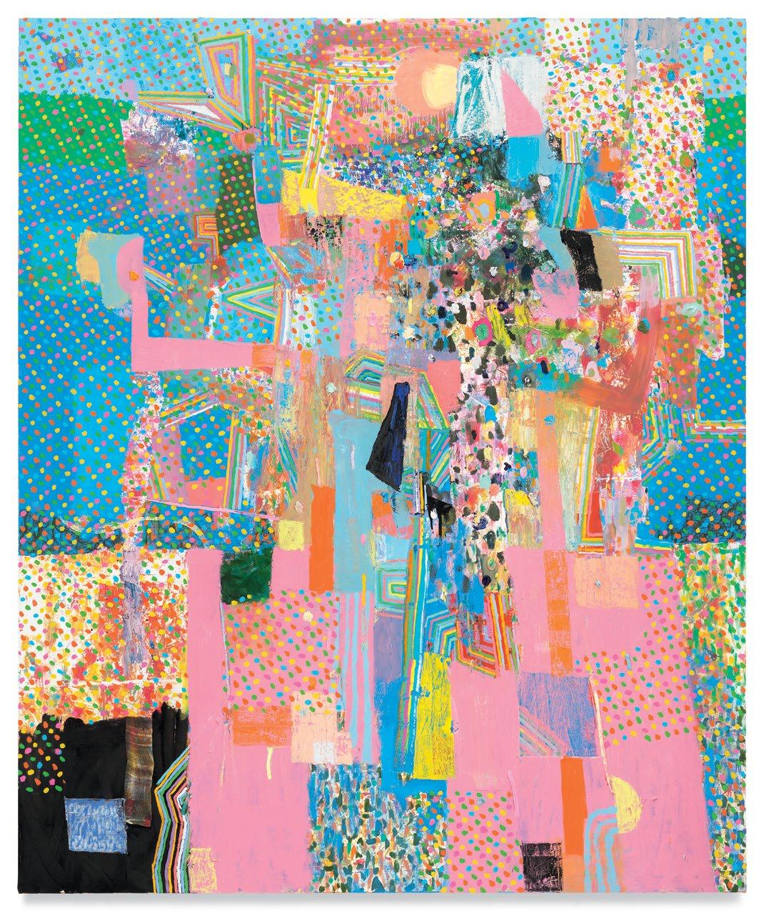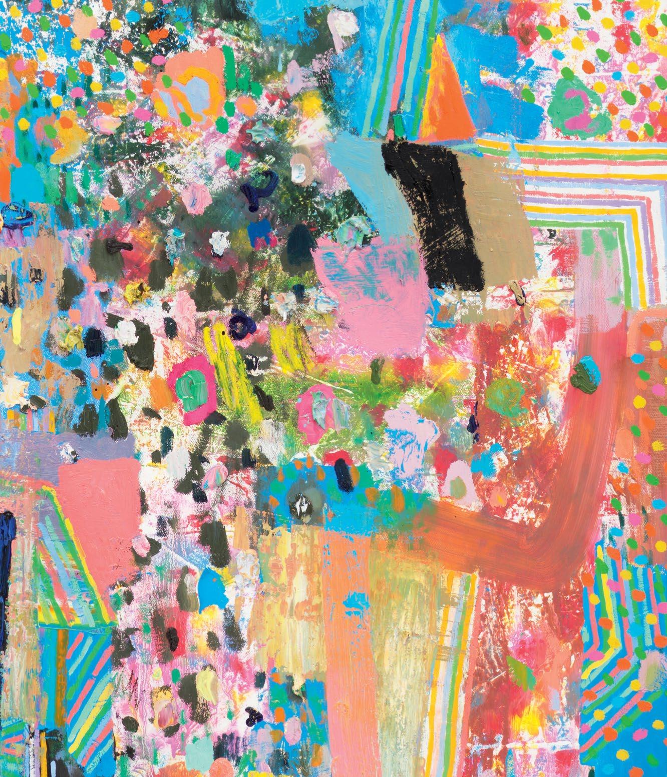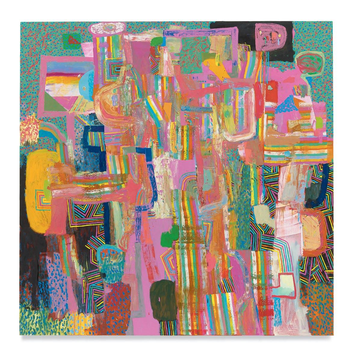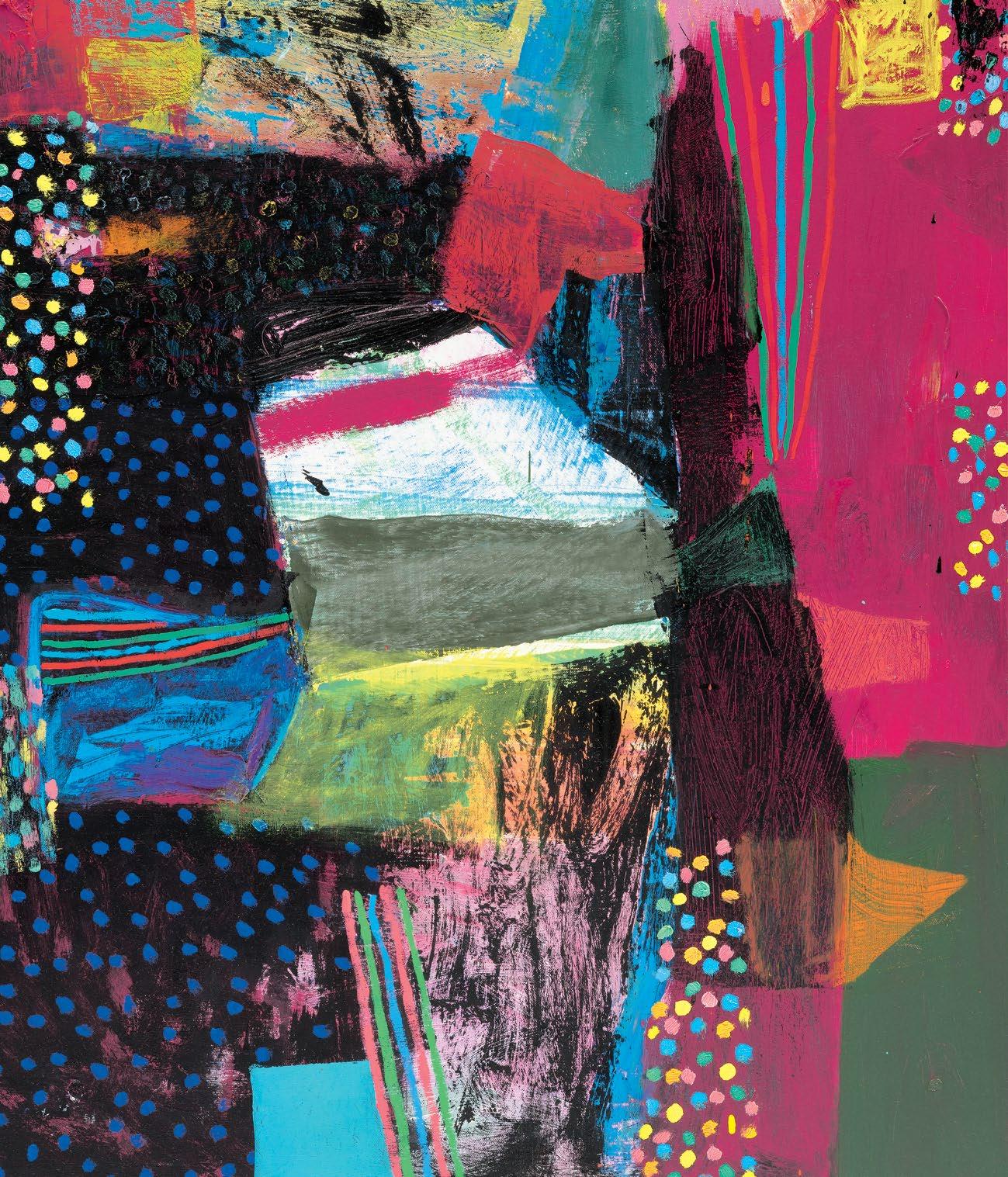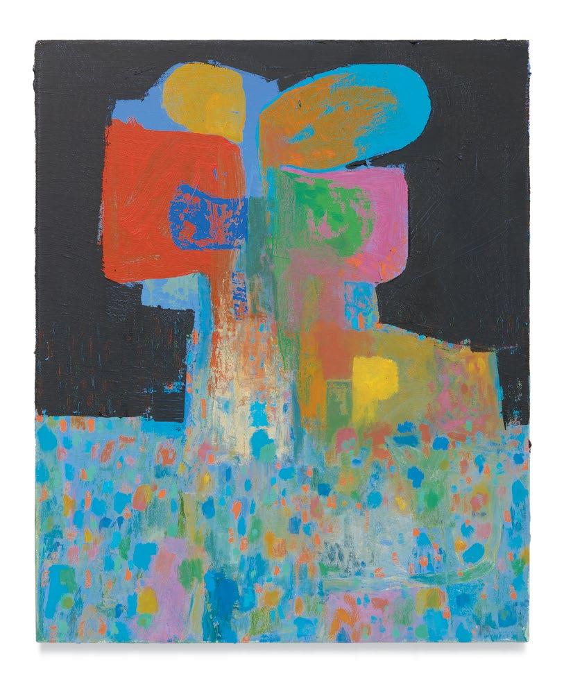 Standing in front of Dodge’s paintings, unfinished yet well on their way, it was clear to me that he had moved his work squarely into the painting multiverse that I’ve suggested above. A er a couple of decades’ worth of solid paintings that arranged and rearranged the terms of their “equations,” these newest paintings strongly suggest a sophisticated coming to terms with their potential for multiplicity and freedom, while remaining commi ed to some of the most tried-and-true, even intrinsic, components of painting, which remains a unique enterprise.