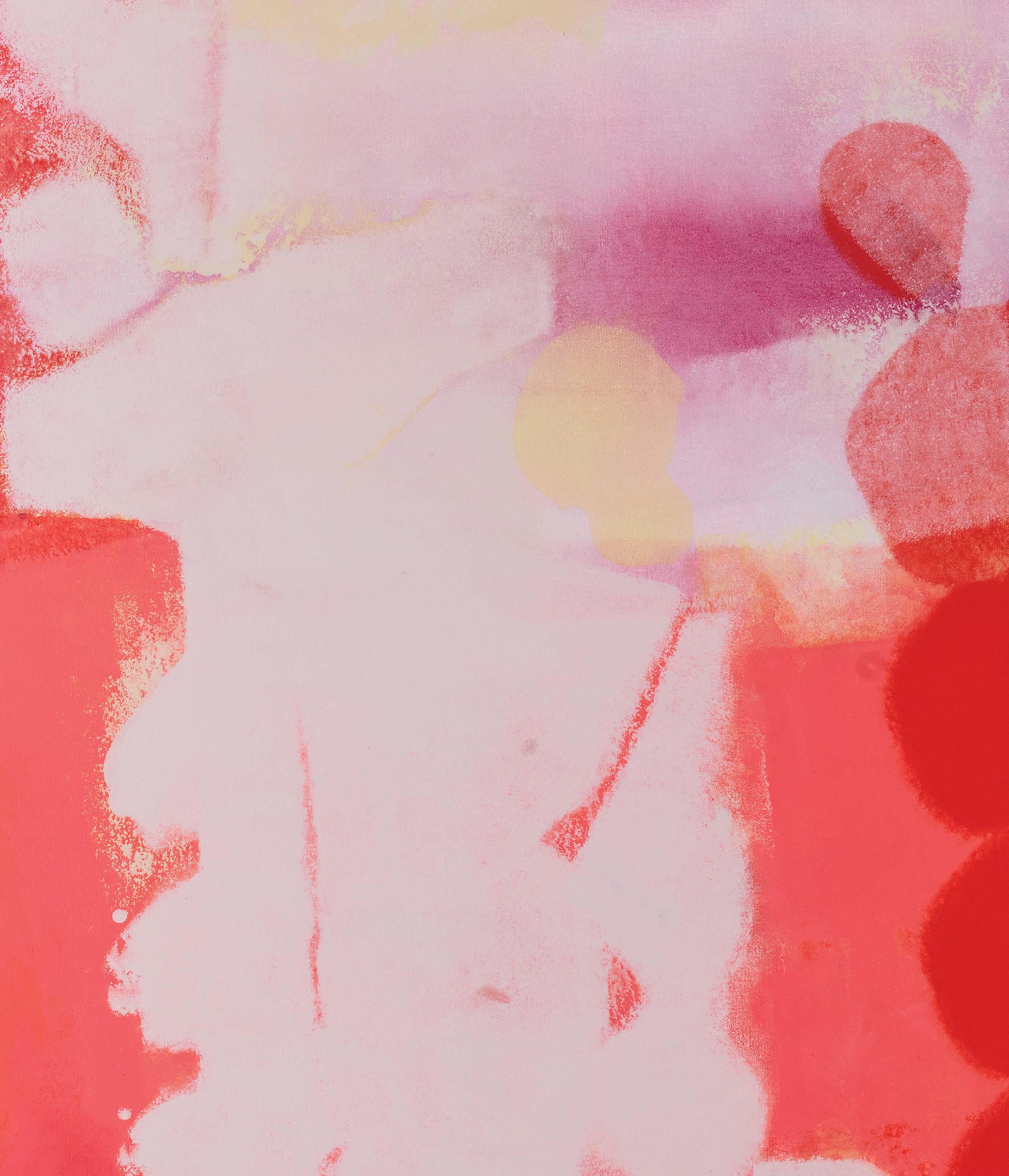 opacity harmonize to make time visible. By refusing any telltale painterly marks, and by actively cultivating saturation and entropy as gesture, Min is able to unwind her creative process. In short, she reanimates the paint, in a sense rewilding her compositions and infusing them with latency. In this respect, she adopts Joan Didion’s memorable turn of a phrase “play it as it lays,”4 infusing the works with an erotic charge and agency that underlies Elizabeth Grosz’s assertion that “art is the sexualization of survival.”5