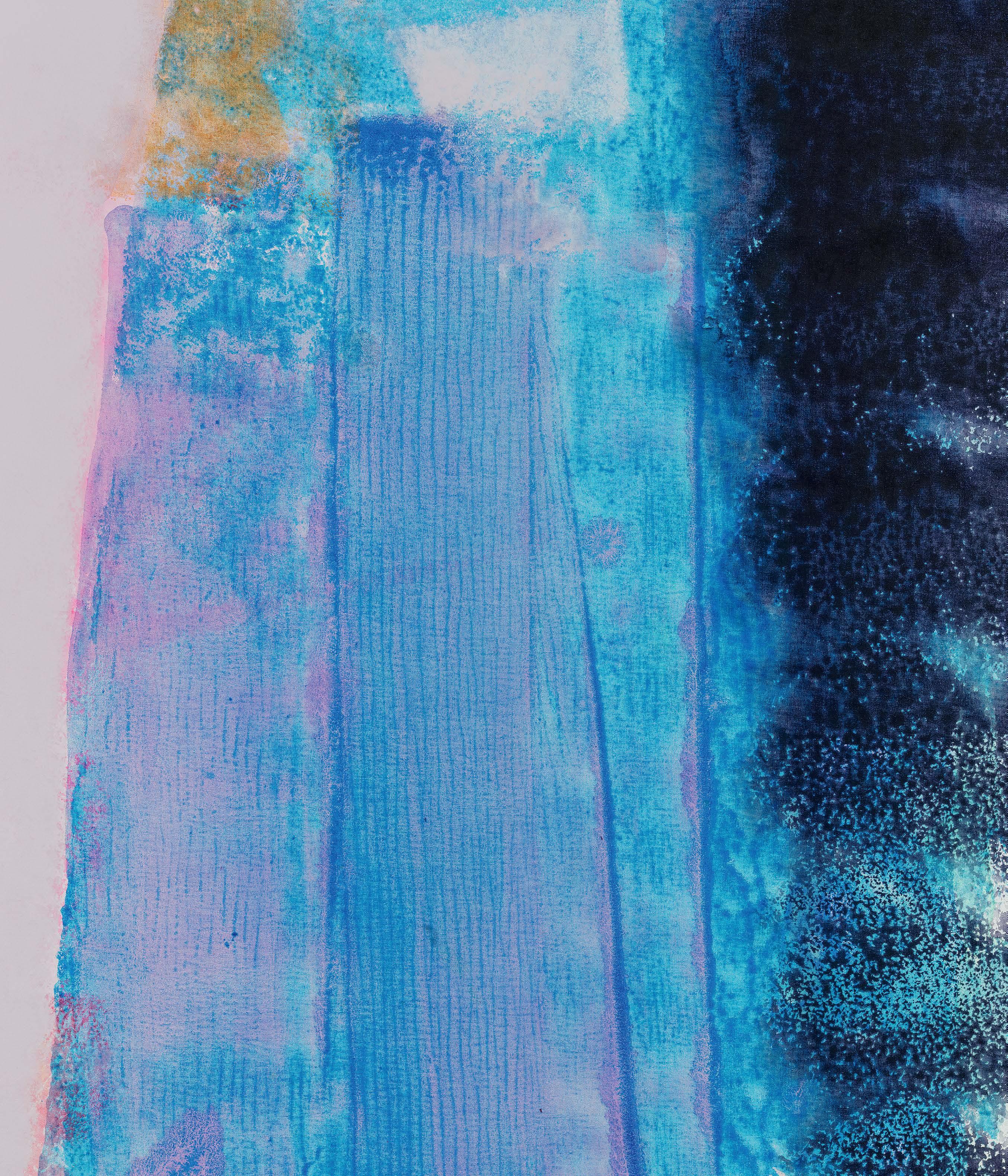 —Alain Badiou1Entering the studio of Yunhee Min is an experience I liken to wading. One wades into the medium and process of her making, surrounded on all sides by paintings and tests on paper; works in progress; containers of paint of every description, in varying viscosities; and what might be understood as ongoing experiments. Experiments in the spirit of an old laboratory, where material undergoing transformation takes time to develop, and the old motto of the alchemist holds sway: solve et coagula, dissolve and distill.2