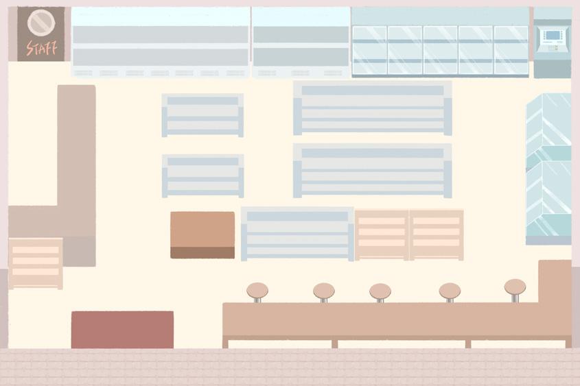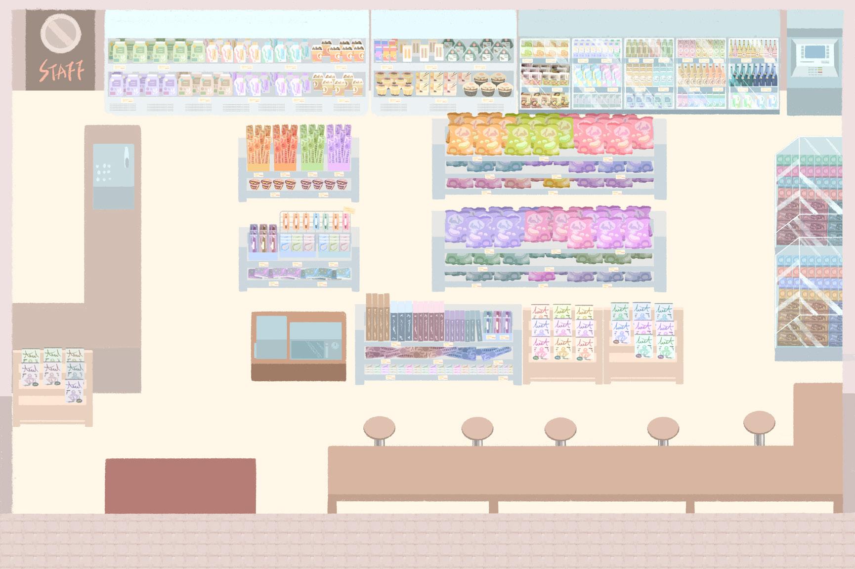 If the player encounters a store clerk or customer during their walk, the game will enter battle mode. If the player encounters a restocking clerk, they will be unconditionally ejected from the store.