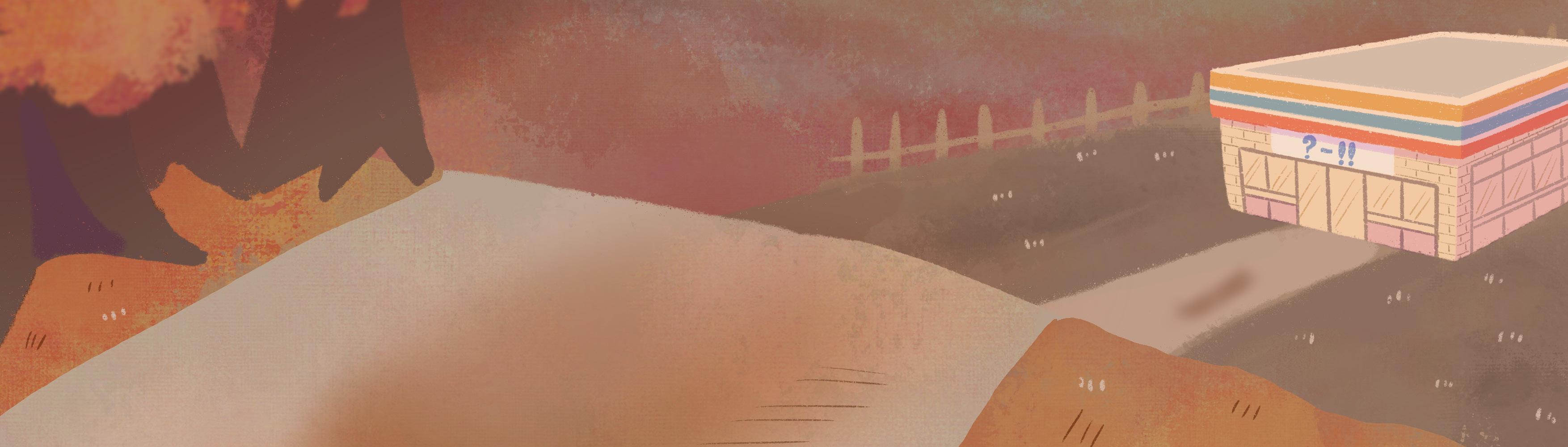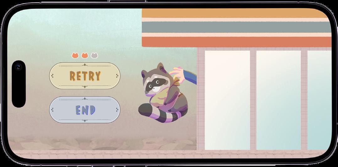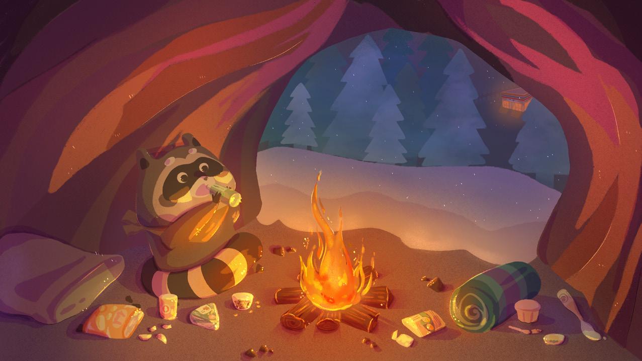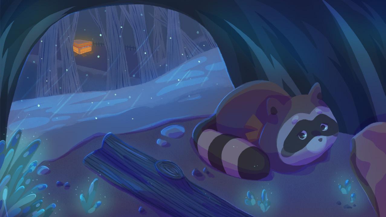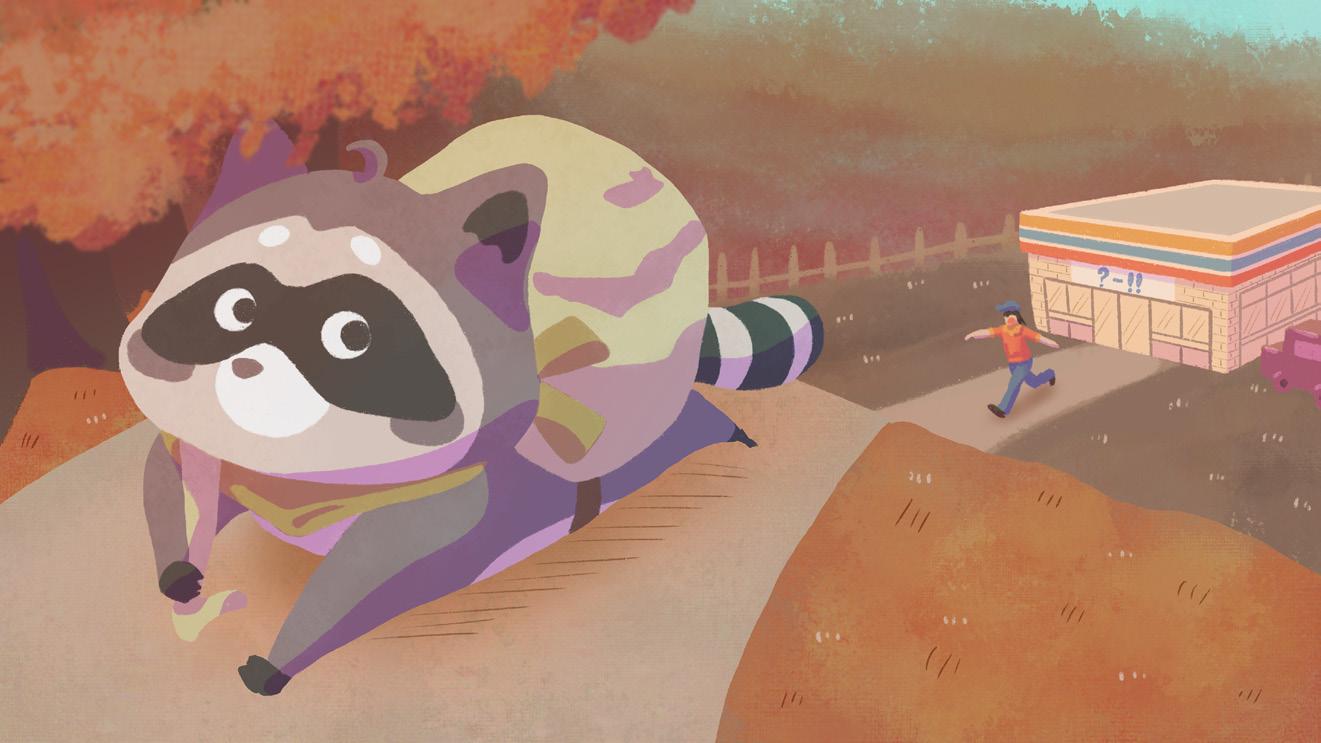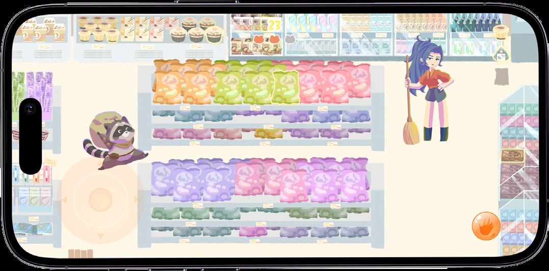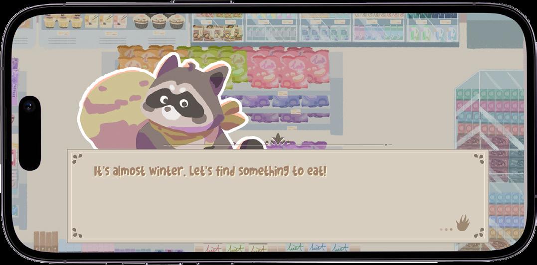 A 2D map-based, third-person perspective exploration adventure game. Players control a raccoon entering a convenience store to collect winter supplies. When faced with challenges, they use a rock-paper-scissors mechanic to win and avoid danger.