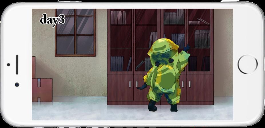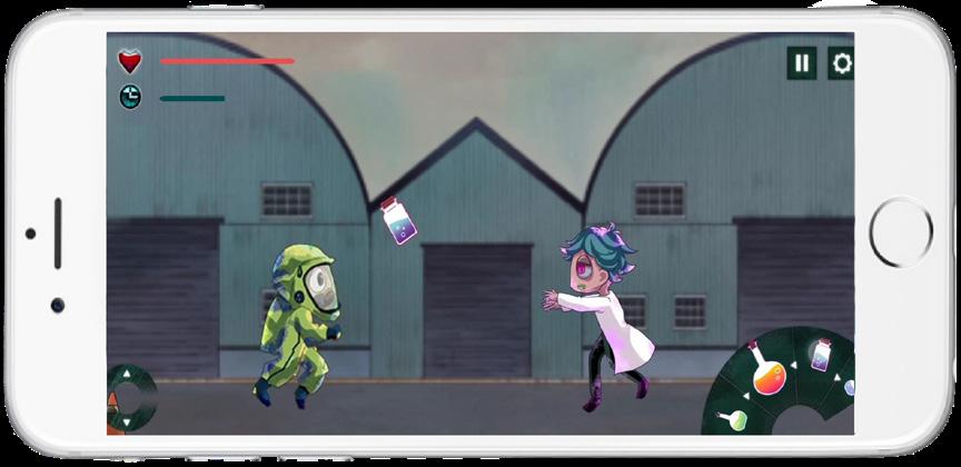 In the game, players click decontamination items to treat infected patients and use arrow keys to dodge them. Contact with an infected character reduces health, and if it reaches zero, the game ends. Each level has a time limit, and upon completion, a transition animation shows the next type of infected. The game ends with a final animation after all levels are completed.