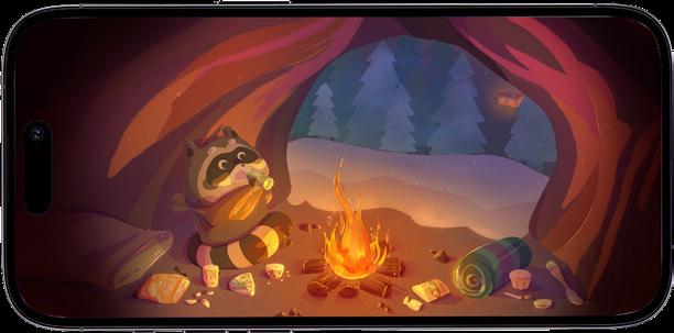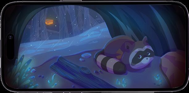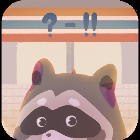 The app icon features the main character looking back at the camera while heading to the convenience store for food. The color palette and lighting create an atmosphere as the raccoon waits for the perfect moment to "raid" the store. This setting also conveys the raccoon's sense of excitement, inviting players to join in the adventure of the convenience store.