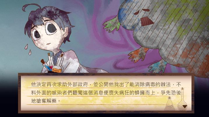 The game quickly immerses players into the story with an opening animation. The narrative follows a scientist who discovers a previously unknown chemical substance. One day, a chemical disaster occurs, infecting the researchers and causing mutations. The protagonist, the last surviving pharmacist, accidentally discovers an antidote that can cure the infection. As the protagonist prepares to save others, infected individuals hear of the cure and frantically rush to obtain it. The player must treat the infected while defending themselves and waiting for rescue.