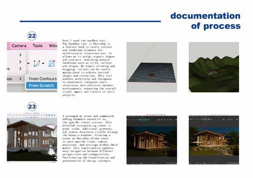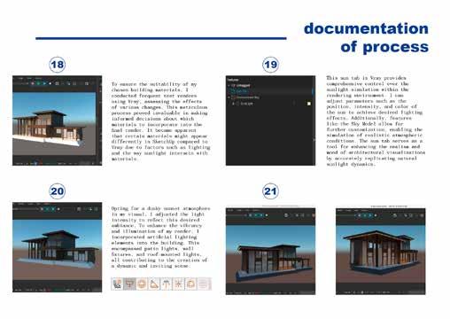 By documenting the rendering and visualization process, I was able to think critically about material choices, textures, and their interplay with the building’s form. This reflection allowed me to refine how materials respond to light, weathering, and human interaction, ensuring they not only enhance the aesthetic but also support the functionality and atmosphere of the space. Additionally, this process deepened my understanding of how materiality shapes spatial experience, reinforcing the importance of tactility, contrast, and cohesion in architectural storytelling.