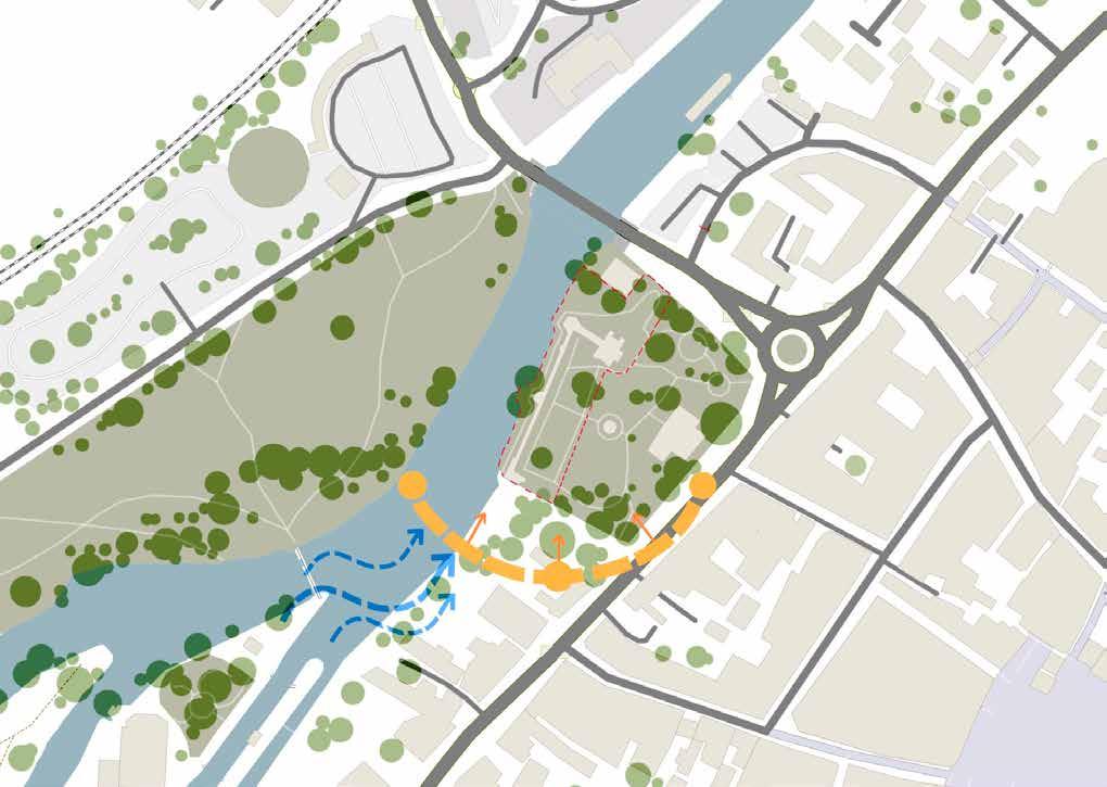 The site plan illustrates how the massing strategy integrates seamlessly with the existing context, fostering a harmonious relationship with Newark Castle. By positioning the museum to embrace rather than dominate the historic structure, the design ensures that the castle remains a central, celebrated element of the experience.