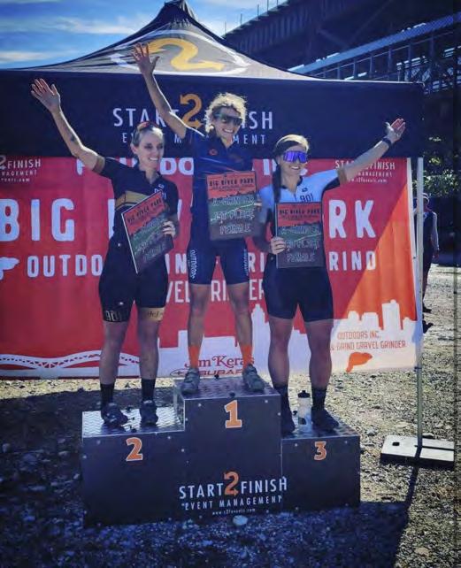 Rebekah Askins (center) placed first amongst all female participants at the Grit n Grind Gravel Grinder.