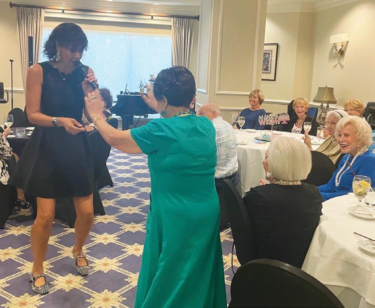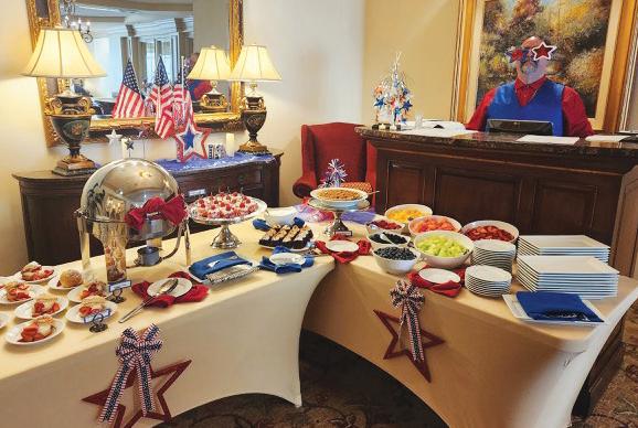 (1) Evelyn & Arthur Luncheon and Fashion Show. (2) Sue celebrates her 39th. (3) Don's Magic Show. (4) Wine Tasting. (5) Tom & Martha at the Kentucky Derby Party. (6) Buffet Night. (7) June's Birthday Social. (8) Our 4th of July celebration was festive, fun & fantastic.