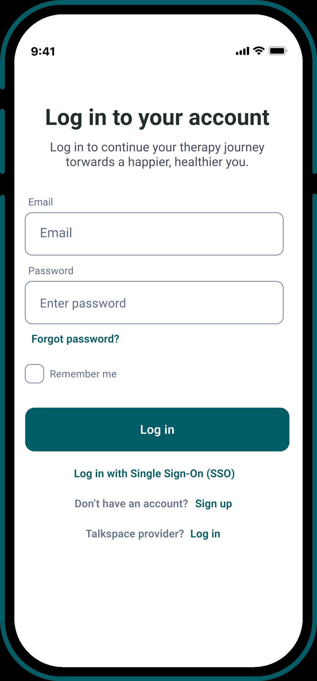 Visit talkspace.com and log in to your account (using your email and Talkspace password), or open the Talkspace app on your phone or tablet.