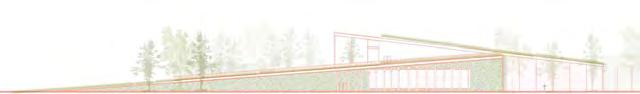 The main building masses are two slopped forms inspired by the unique topography, while creating separation between public and research. Throughout the architecture, visitors will find themselves in unique exterior-interior experiences whether it is a greenhouse that seamlessly blends to the outdoors or a series of tapered steel and green walls.