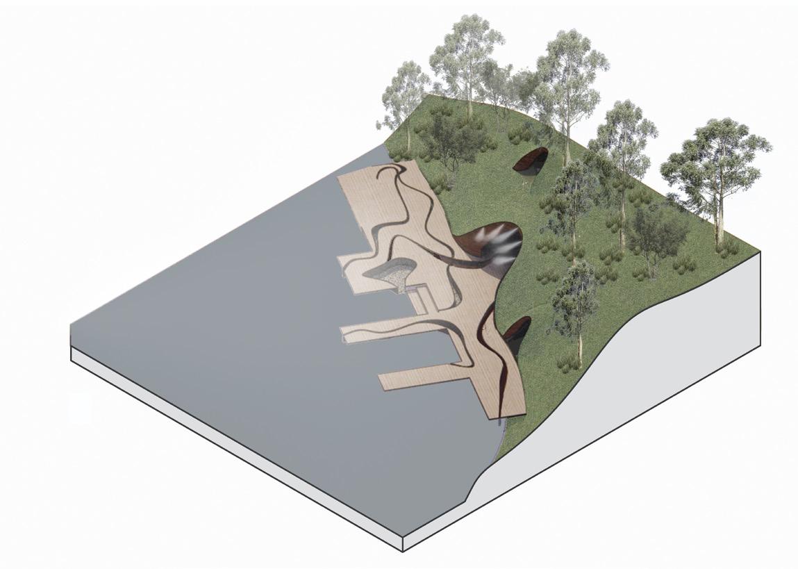 A water and nature boundary between Richmond and South Yarra, separated by a river but forgotten about since it’s creation. Once man made but now stands juxtaposed to the concrete and industrial heritage of Richmond. A way to access Herring Island from Richmond and connect the land but to emphasise the duality between the natural and the created.