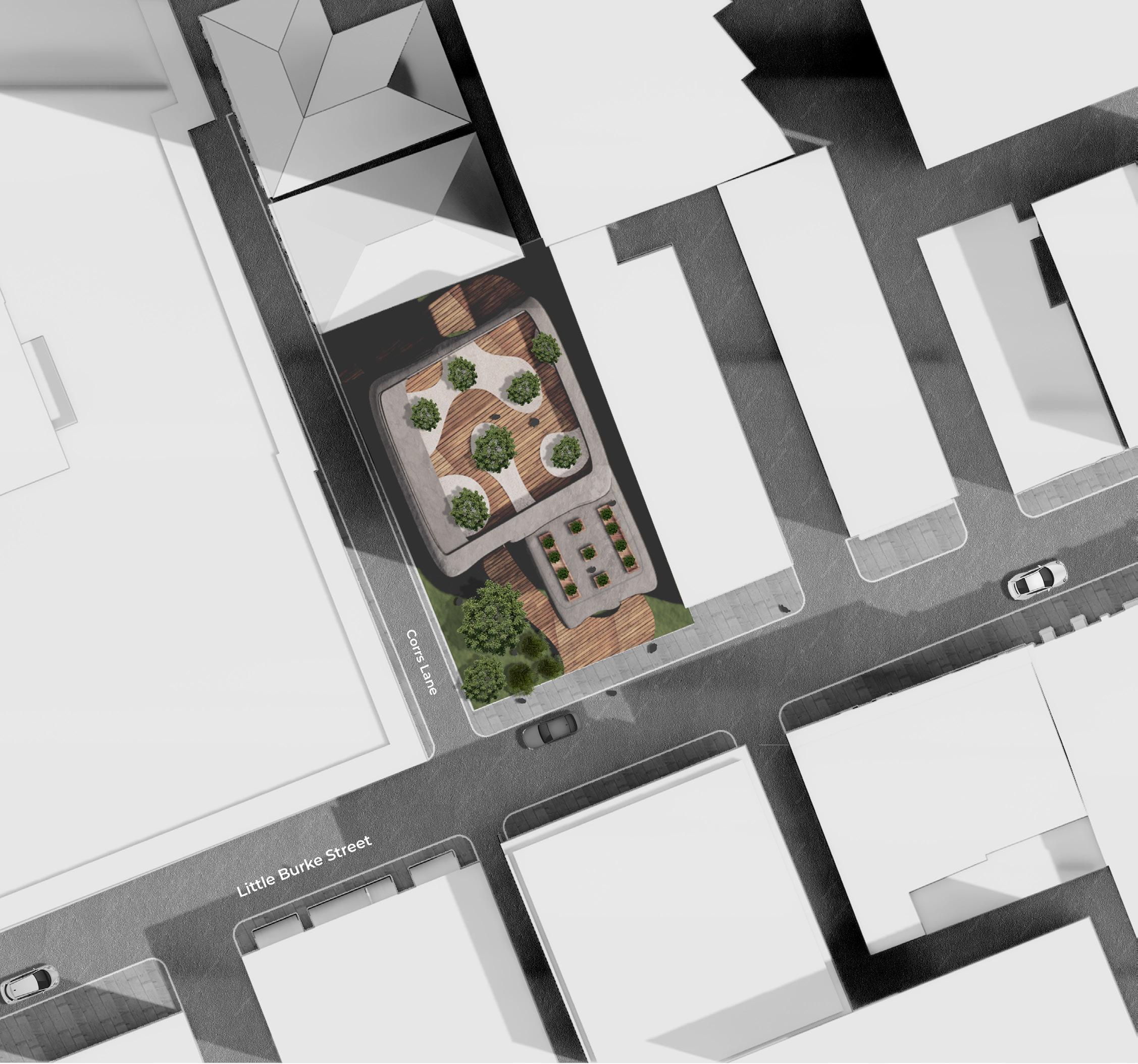 Juno is about using materiality and form to connect the built form and the natural invironment as one. Juno Development comprises of a basement carpark. Ground floor with a Café, Organic Greengrocer, Barrister’s Office, and Building Design Studio. Along with the first floor which contains two apartments each with four bedrooms. Once the schematic design was approved, further exploring materiality, sustainable and recycled material were chosen where possible. Working to the local council requirements, feasibility reports and town planning drawings were produced with all relevant documentation.