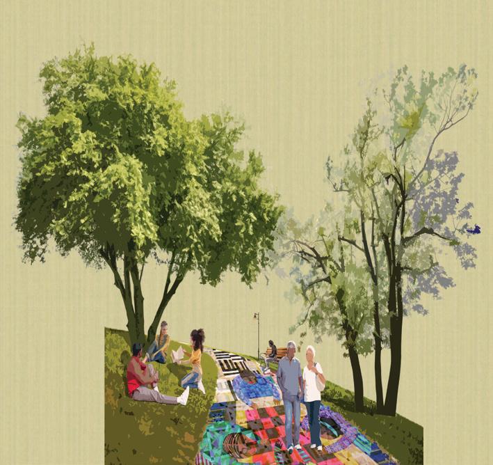 Scanlonville’s Stories Stitch Together Heritage Park seeks to celebrate Scanlonville’s history and traditional arts. The park design aims to reimagine storytelling through a collaborative and artistic process. Monuments, mosaic paths, and a main gathering space with a mural encourages a space for celebration and fostering the importance of the traditional arts and skills. A Story Stitched Together event can be programmed annually as a quilting festival for the community.