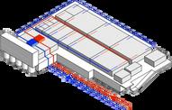 Volumen Suspendido: Este volumen proporciona sombra a la plaza central, reduciendo la ganancia de calor solar directa en el espacio público interior