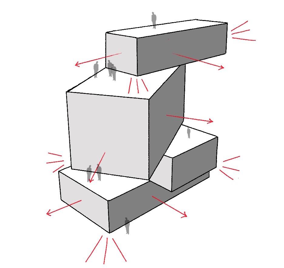 I tried to move around the cubes to create a clear connection between the floors and accentuate the cyclic programme of the building.
