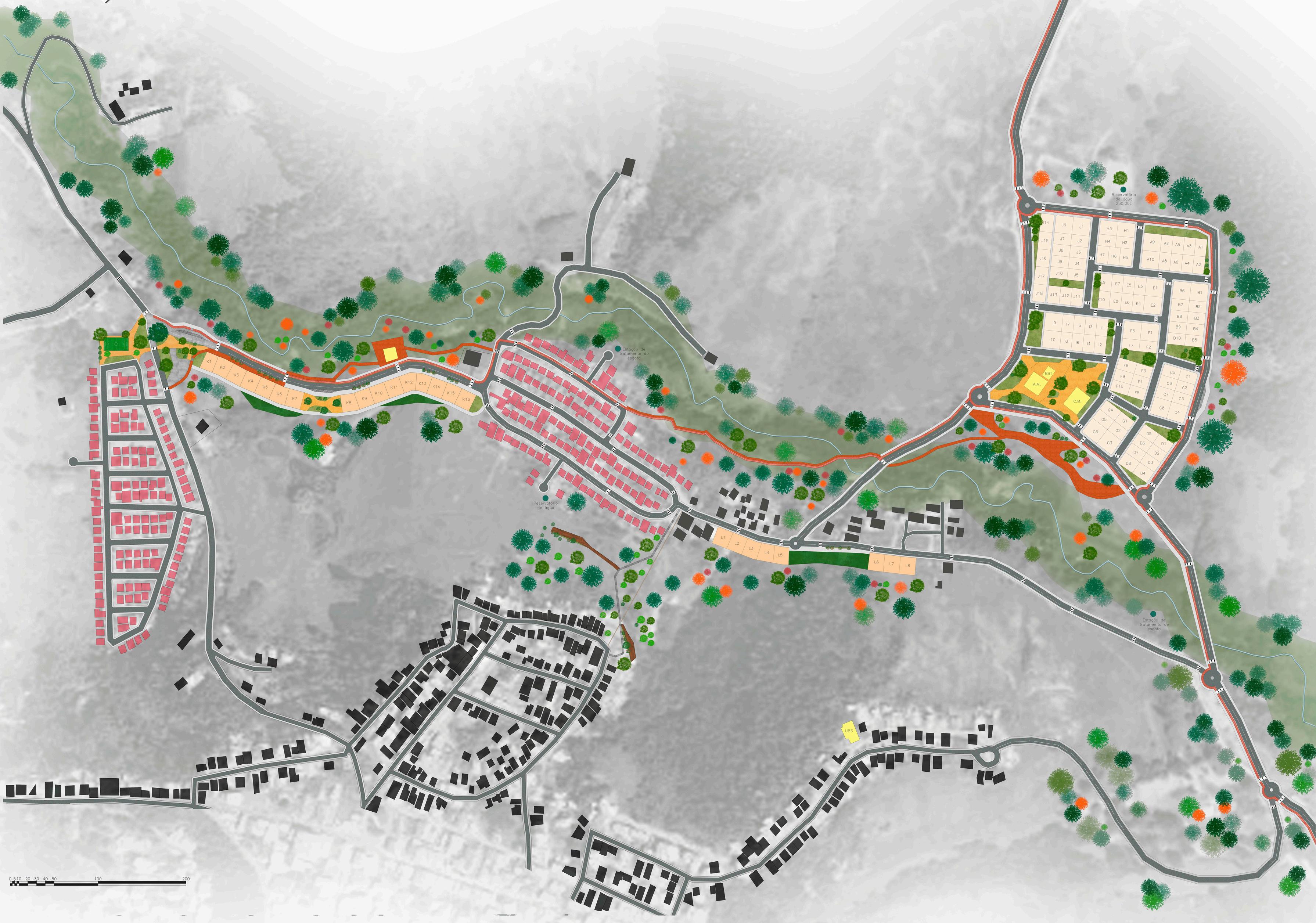 A história de ocupação da região remonta à construção de dois conjuntos habitacionais do programa “Minha Casa Minha Vida”, estes que foram erguidos sem infraestrutura urbana adequada e com limitado acesso e integração para com a cidade Como uma alternativa para solucionar esses problemas, o presente projeto propõe estimular a ocupação da região por meio da qualificação dos espaços e das ruas, integrando-os à paisagem natural e estabelecendo novos canais de comunicação com a cidade. O conceito da proposta foi inspirado no marco visual da Gameleira, árvore de grande que é considerada um importante ponto de referência para a população local