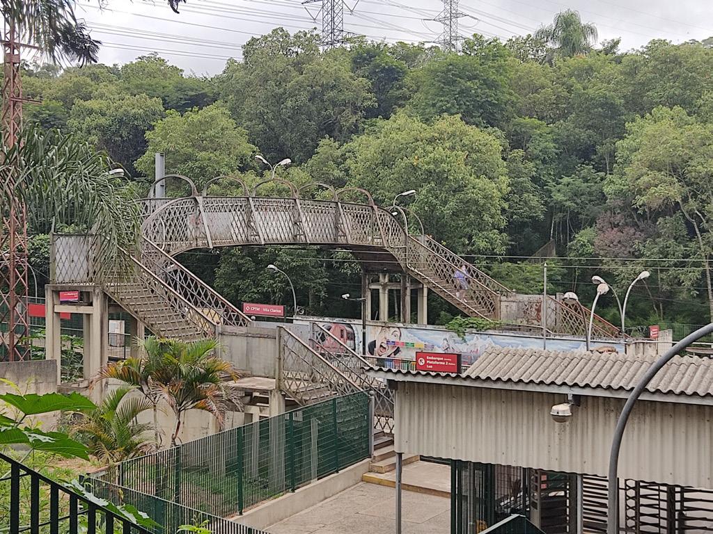 A estação de trem mais próxima é a Vila Clarice, como já citada anteriormente, que está a apenas 1.4km do acesso da Estrada Turística do Jaraguá. Essa faz parte da Linha 7 – Rubi, e, assim como as outras da mesma linha, está bem degradada e não tem uma infraestrutura adequada para atender a popula ção que a utiliza. Seu acesso se dá pela Rua Maria José Vasconcelos Mankel, com uma grande escadaria que não garante acessibilidade (Imagem 3). Sua plataforma conta com apenas um trecho bem curto de cobertura, e para passar de uma plataforma a outra é necessário utilizar uma passarela metálica (Imagem 4). A distância entre o trem e a plataforma também é grande.