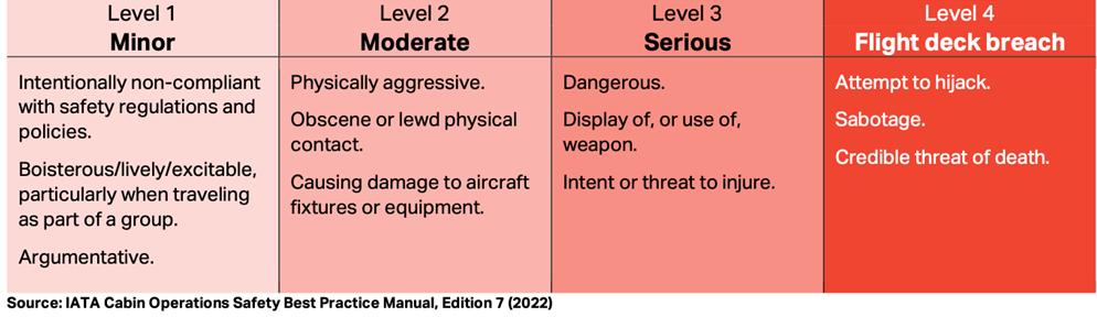 Operativamente esiste una classificazione dei comportamenti disruptive costituita da 4 livelli, i quali determinano le successive azioni dell’equipaggio: