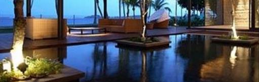 Cushy furniture, wall art and control lighting, potted plants, a shade metal structure with greenery are some of the main elements included
