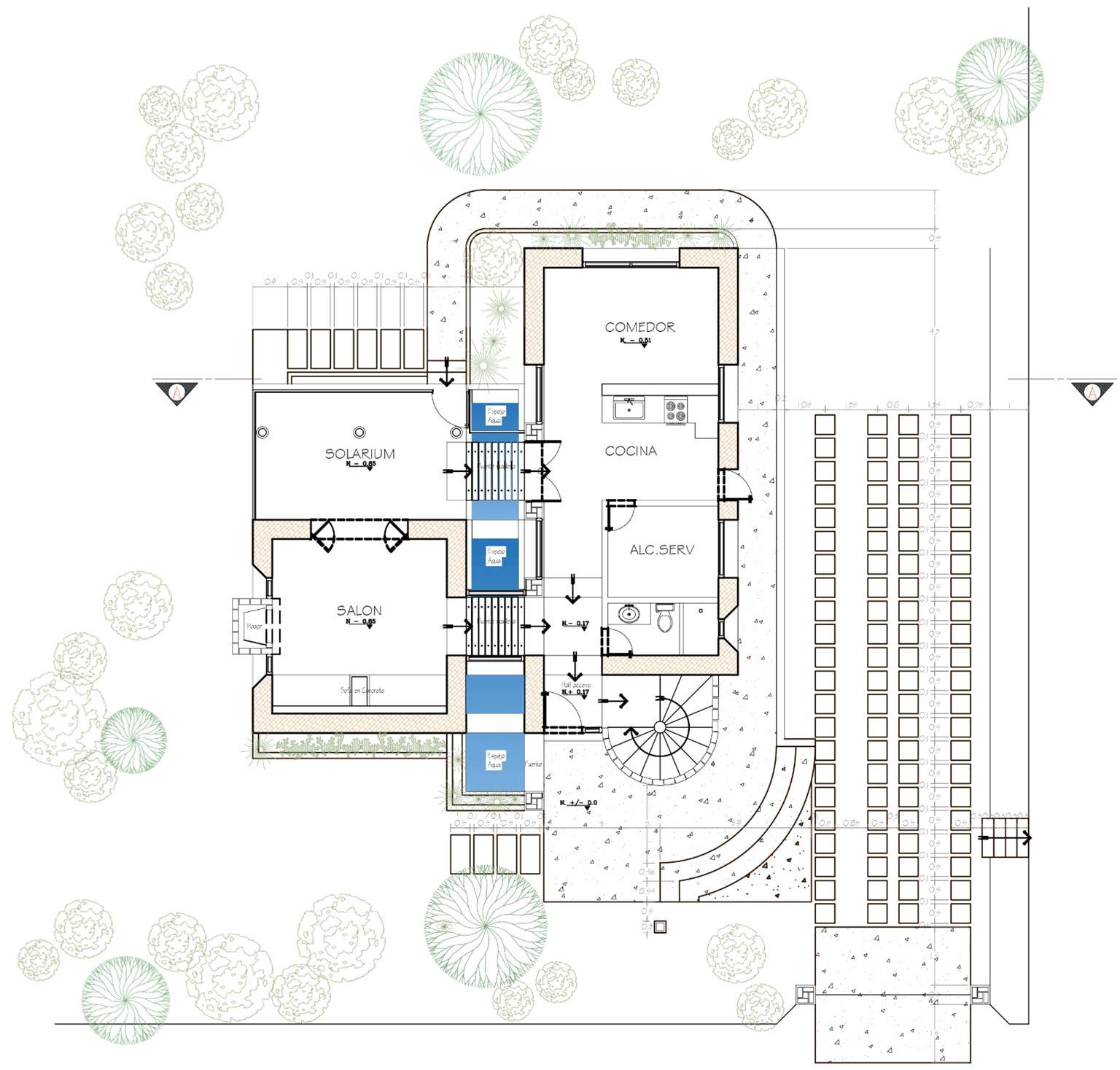According with the local weather conditions, the plot orientation and dimensions and the current vegetation, the house main entrance faces the north east and the rest of the programs follows bio climatic recommendations to decrease the energy consumption and provide light, shadow and wind coherently