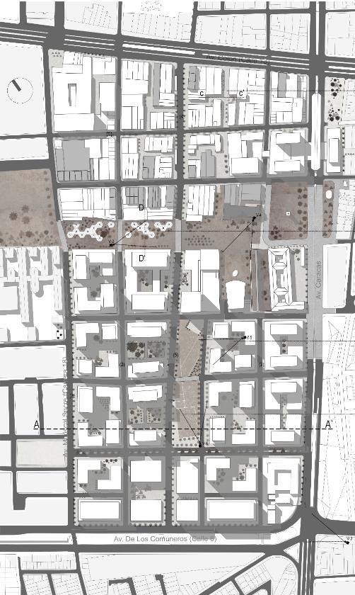 At the level of physical intervention, the proposal is emphasized in 2 perpendicular axes that determine the development and connectivity of the sector with the historic center and the periphery