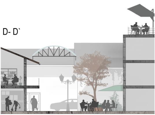 Preserving and reinforcing the heritage value of the buildings in the area, commercial passageways are generated accompanied by vegetation and urban furniture The buildings that have two floors are enabled for commerce, using the terrace slabs to generate restaurantes with great visual