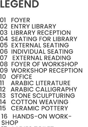 The site is divided into zones in respect to their pri vacy and function. The three zones represent pub lic(learning), private (living) and semi-private(in teracting). The areas are primarily divided based on the entry and neighbouring context.