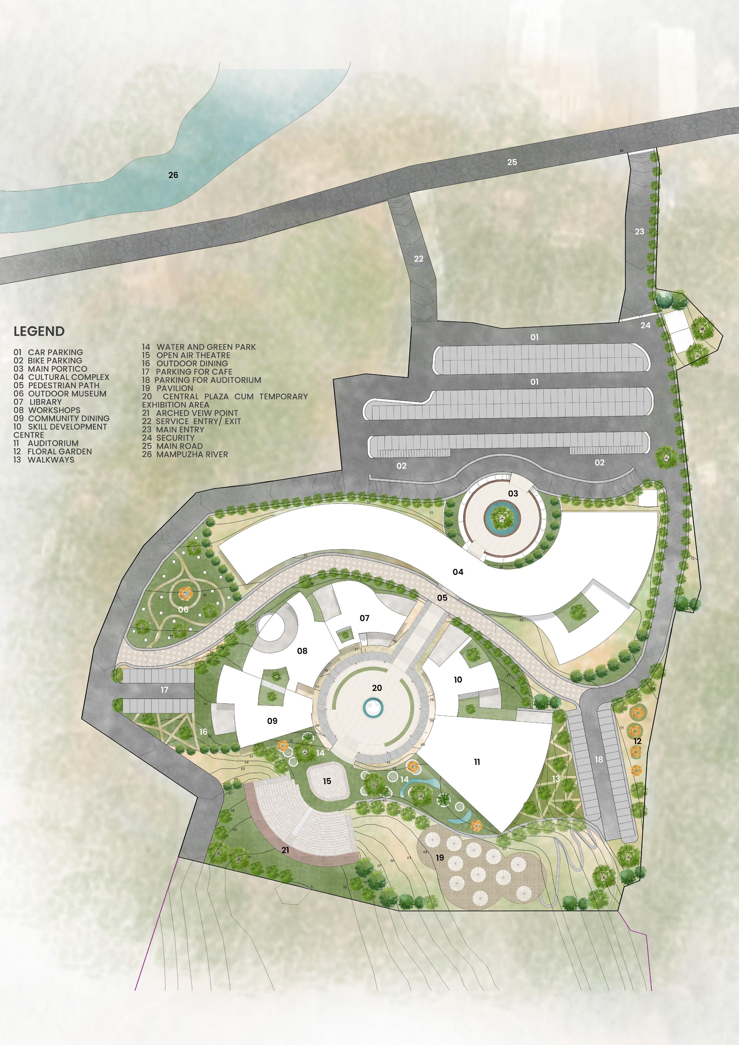 The selected site is at Olavanna in Kozhikode district. As Olavanna has good population density, development needs are diverse and large. This place has been influenced greatly by its rulers like Samutiris and Britishers. Also the place will pave way for the community as a whole and will establish a quality statement of culture through it. It will also increase the socio- economic status of the area. Also, the site is secluded from the traffic and pollution of calicut.