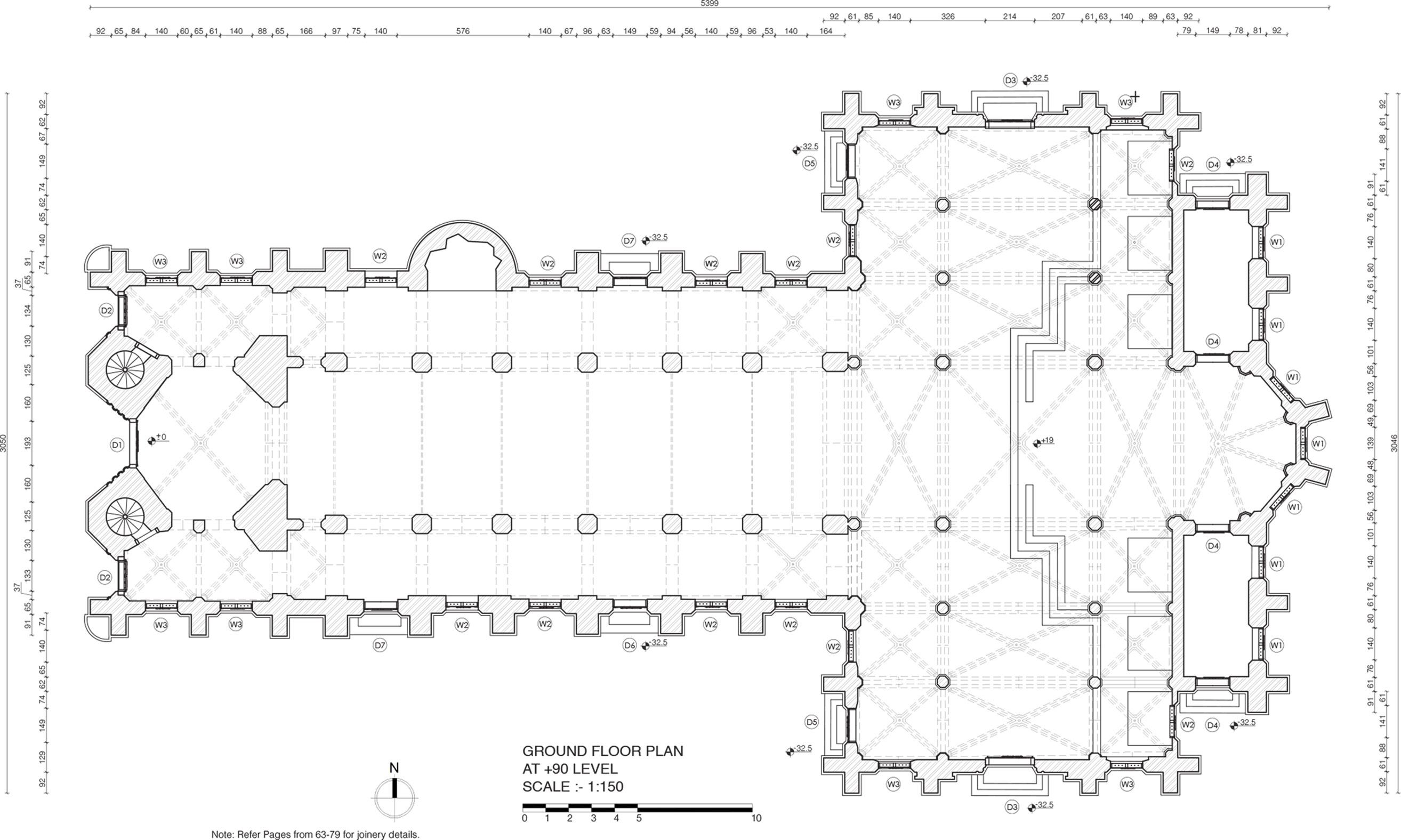 FFL Finished First Floor Level FSL Finished Slab Level SFL Finished Second Floor Level Remarks: NORTH Checked Drawn By Date Scale Site Check Approval Drg. No: Job No: Drg. Title: used or reproduced without permission The contractor must verify all dimensions of the job and report any discrepancies to architect before executing the work. West nadakkavu, Calicut and is not to be M/s. SKYRIPPLES ARCHITECTURE STUDIO This drawing is the property of 18.01.2022 WORKING DRAWING SET B GROUND FLOOR PLAN Dimensions are in centimeters R C H S U D WEST NADAKKAVU, CALICUT Architects: Client: Project: Key plan: No. Revision Prints issued to Date By Date No. By + 35.0 FFL. 150 x 100 P-Room + 45.0 FFL. 150 x 120 Wash + 45.0 FFL. 150 x 240 Prayer Room MD SILL HT- 00 W6 SILL HT- 110 KW SILL HT- 110 DW2 SILL HT- 00 W4 SILL HT- 00 DW1 SILL HT- 150 V3 V3 SILL HT- 00 W2 SILL HT- 00 W3 SILL HT- 00 W5 SILL HT150 V2 SILL HT00 W8 SILL HT00 W11 D1 D1 D1 D2 D2 FSD1 D1 D2 UP UP UP DN 170.0 20.0 150.0 20.0 90.0 130.0 300.0 300.0 90.0 150.0 90.0 270.0 390.0 110.0 340.0 150.0 20.0 300.0