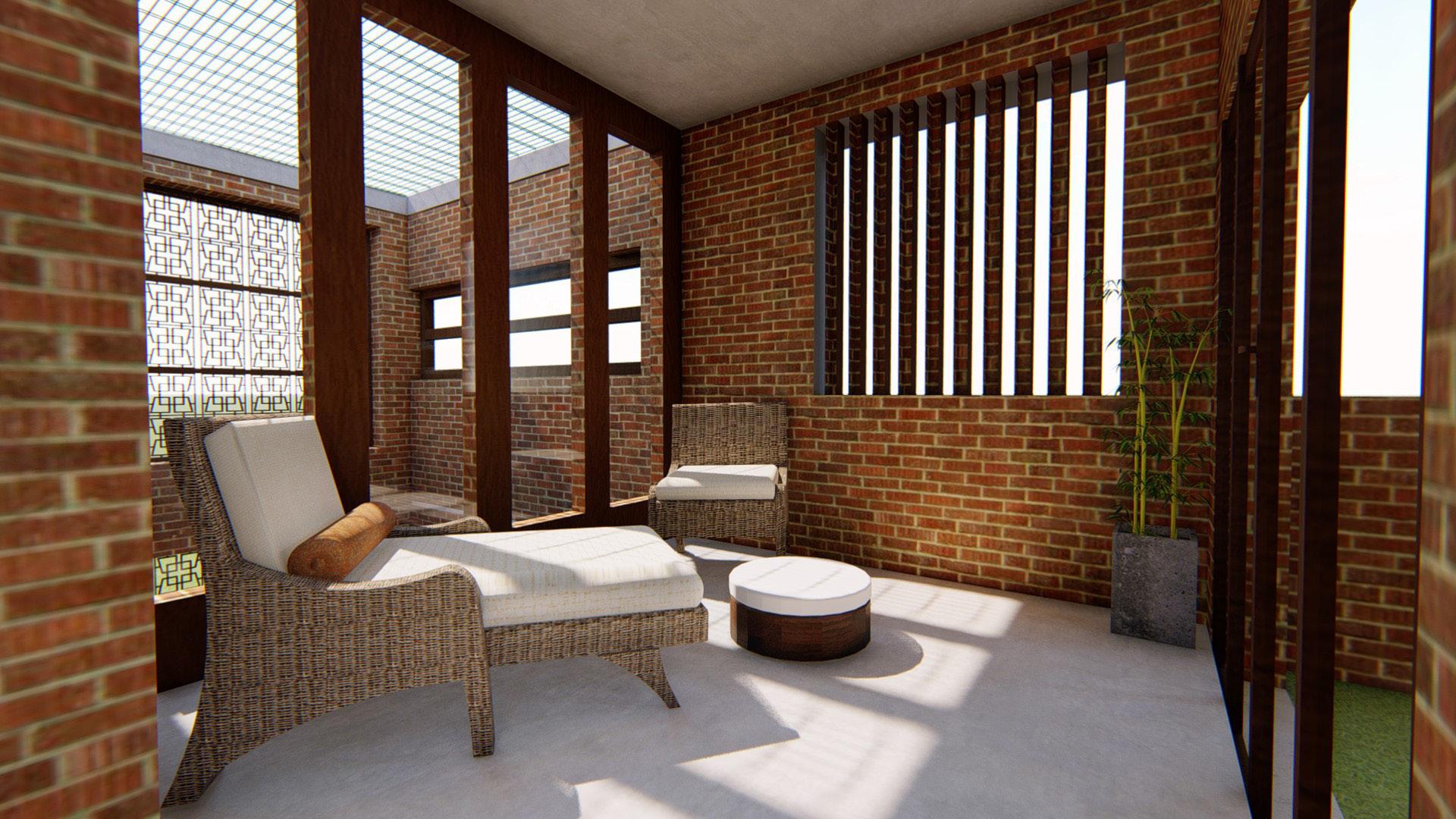 The location of site is admist busy Jagathy junction, therefore privacy, pollution, greenery and ventilation is important. To provide better climate facility and environment inside the house, brick is used as primary material. The client is a child pschologist, and family consists of she, her husband, son and grandmother. Enthusiatic family, enjoying family time farming and interacting.