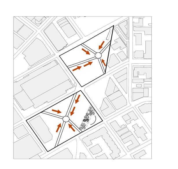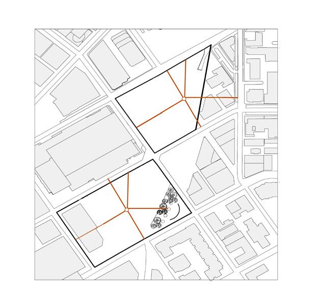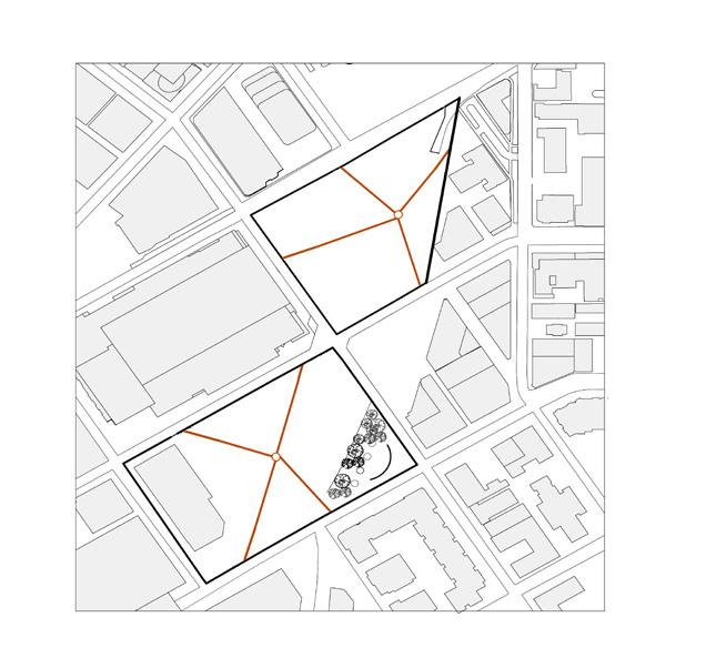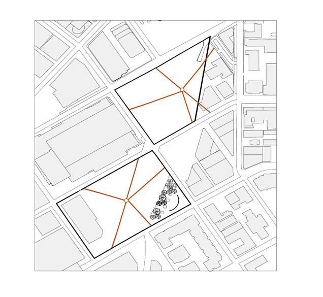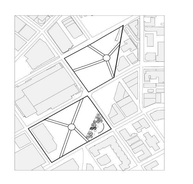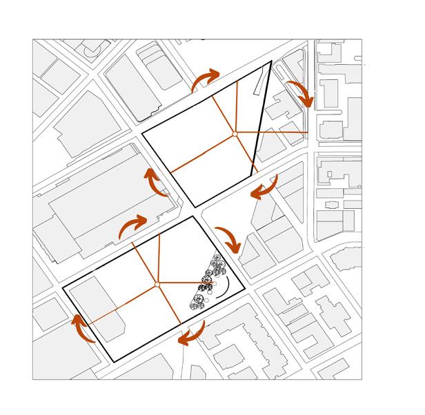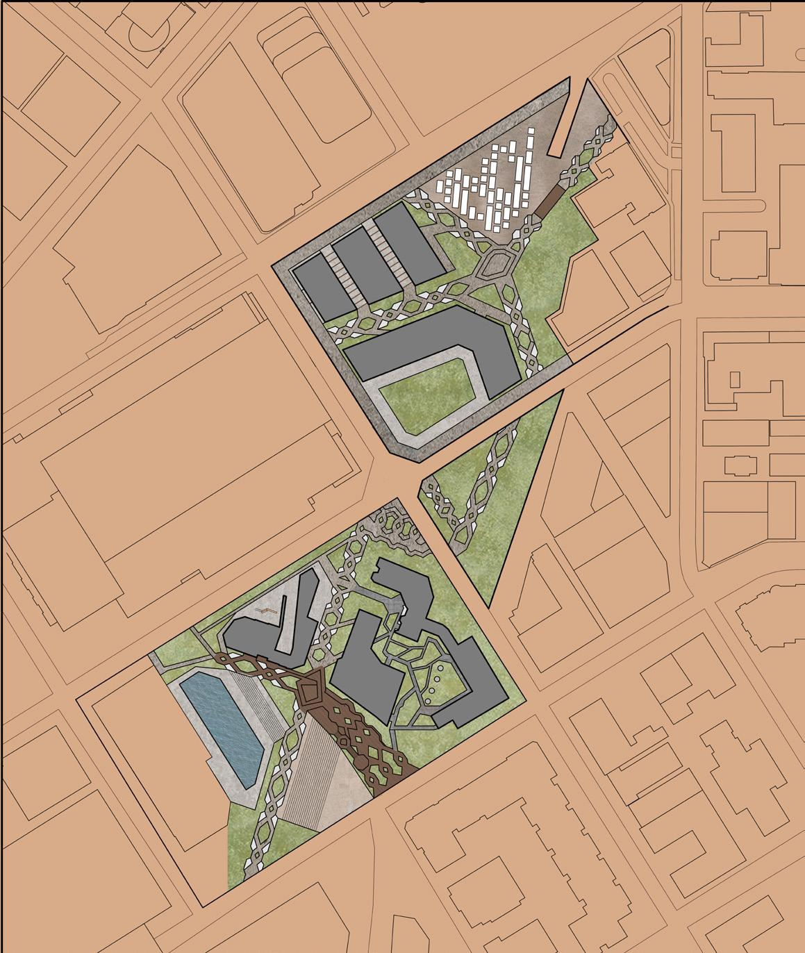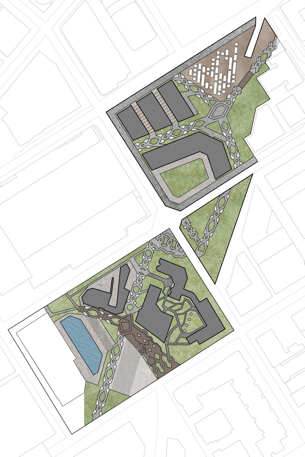 Breaking the grid to create spaces where it can be broken down for cultural, social, and economic reasons to better the environment. The grid division is like the division of neighborhoods, but instead of creating a boundary, it is more for the unity of it.