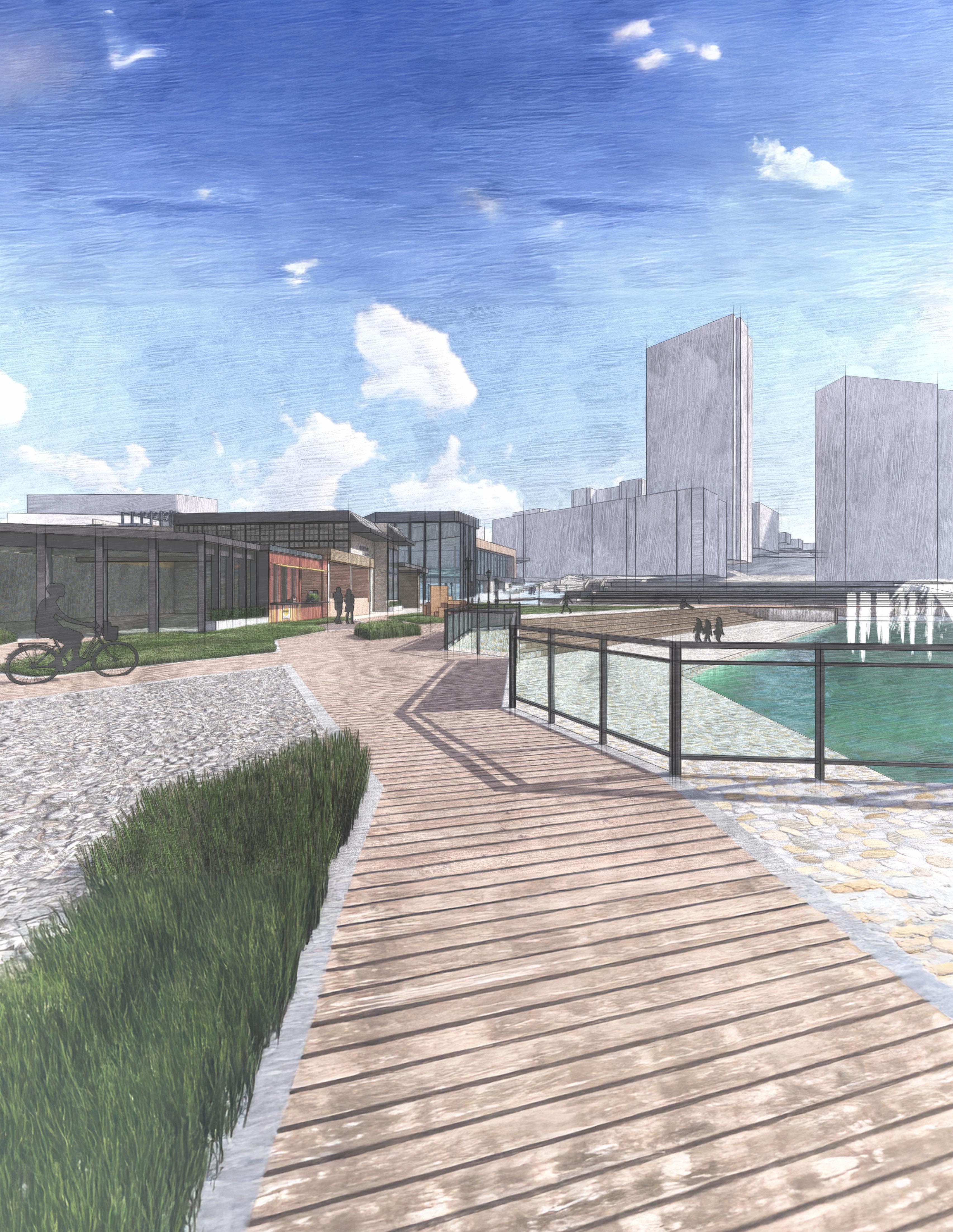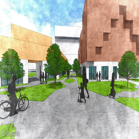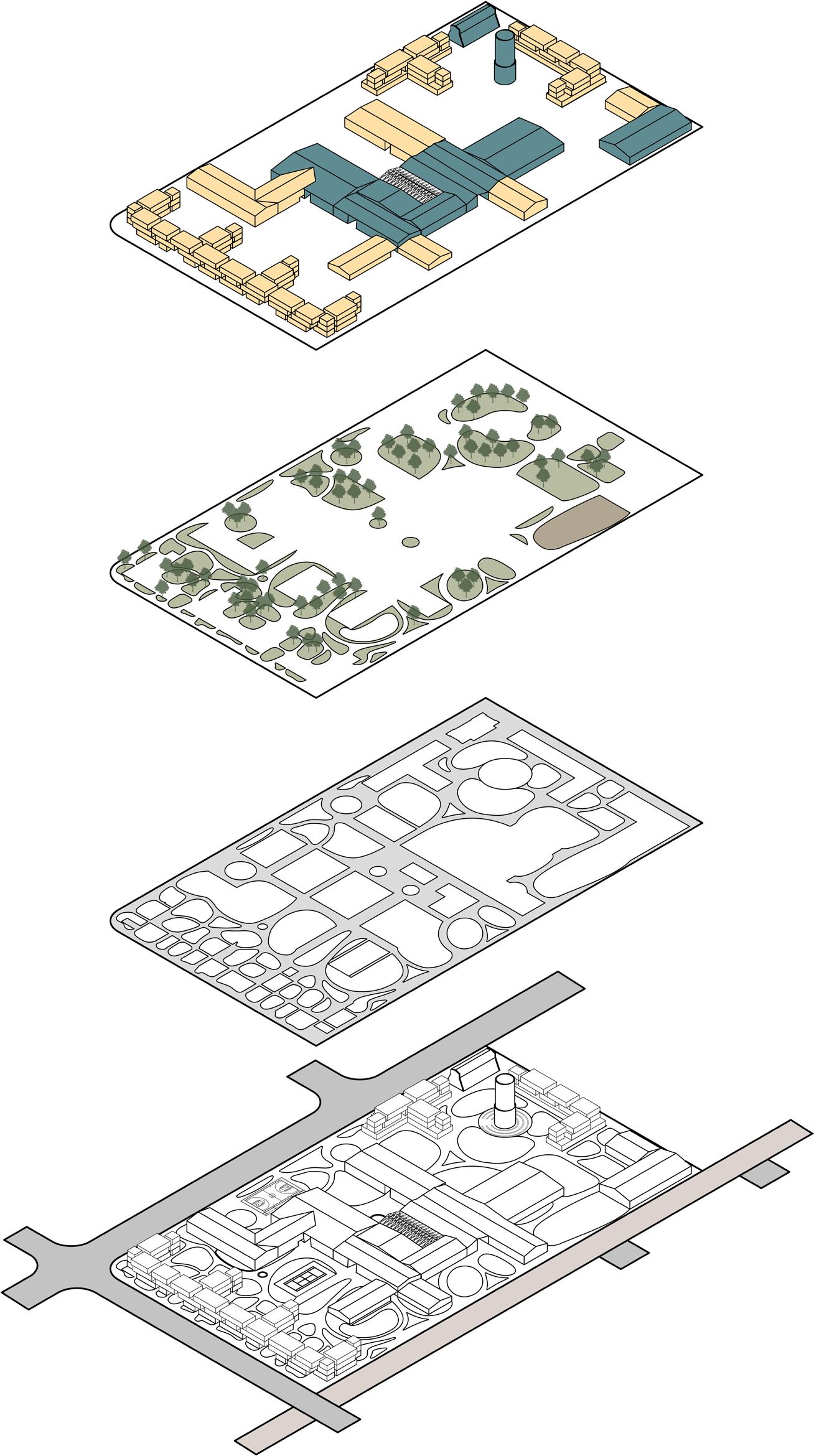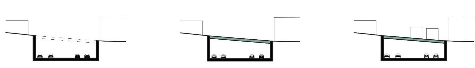 Each neighborhood has its own identity, but the lid unites them through program and landscape to restore connections.