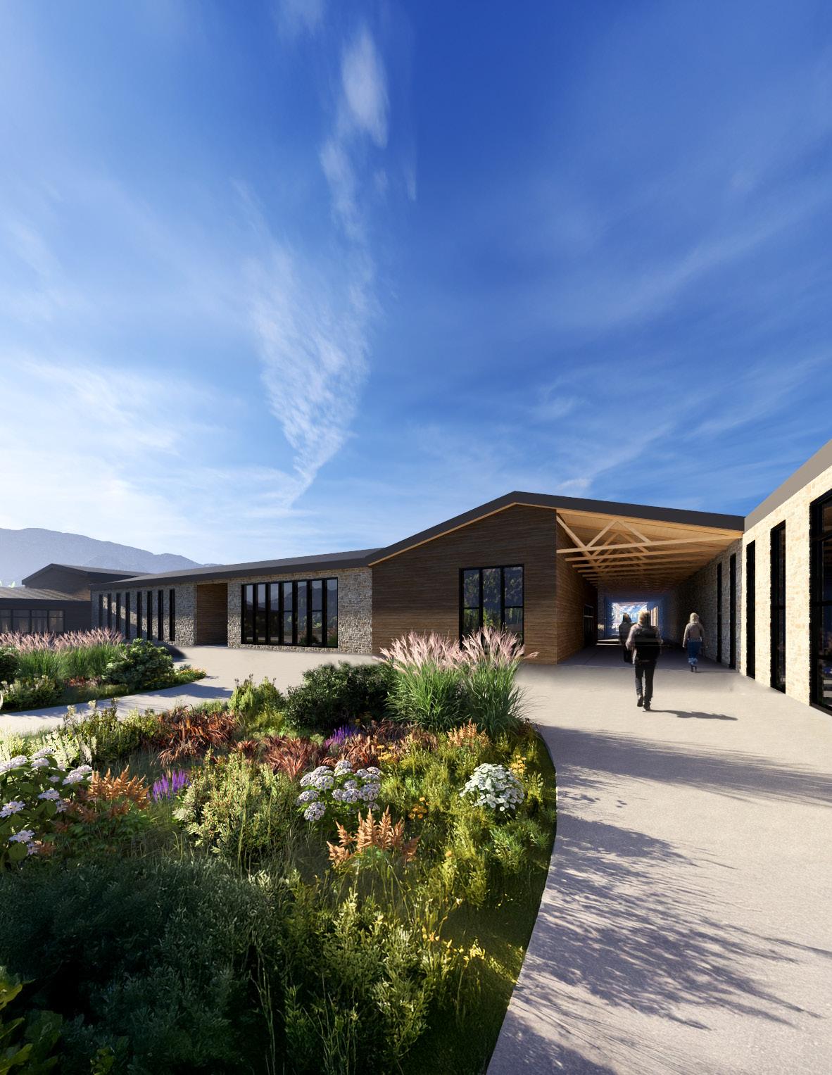 Locally sourced stone complements the landscape, providing durable, lowmaintenance weather resistance