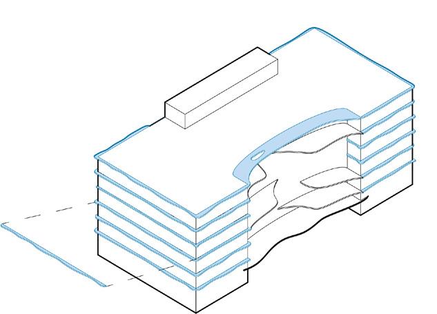 The structure also supported vertical fins across the building, allowing for water flow with the philosophy of “If it doesn’t move by water, it is shaped by water.” Make sure that the materials align with the motive of water due to the goal of collecting water to be reused again in the building with the pre-designed water collection system. Our concept for the project is a gallery space based on water collection and what water can do within a building. The first two floors of the structure support a water collection area, helping to distribute water throughout the structure and educate visitors.