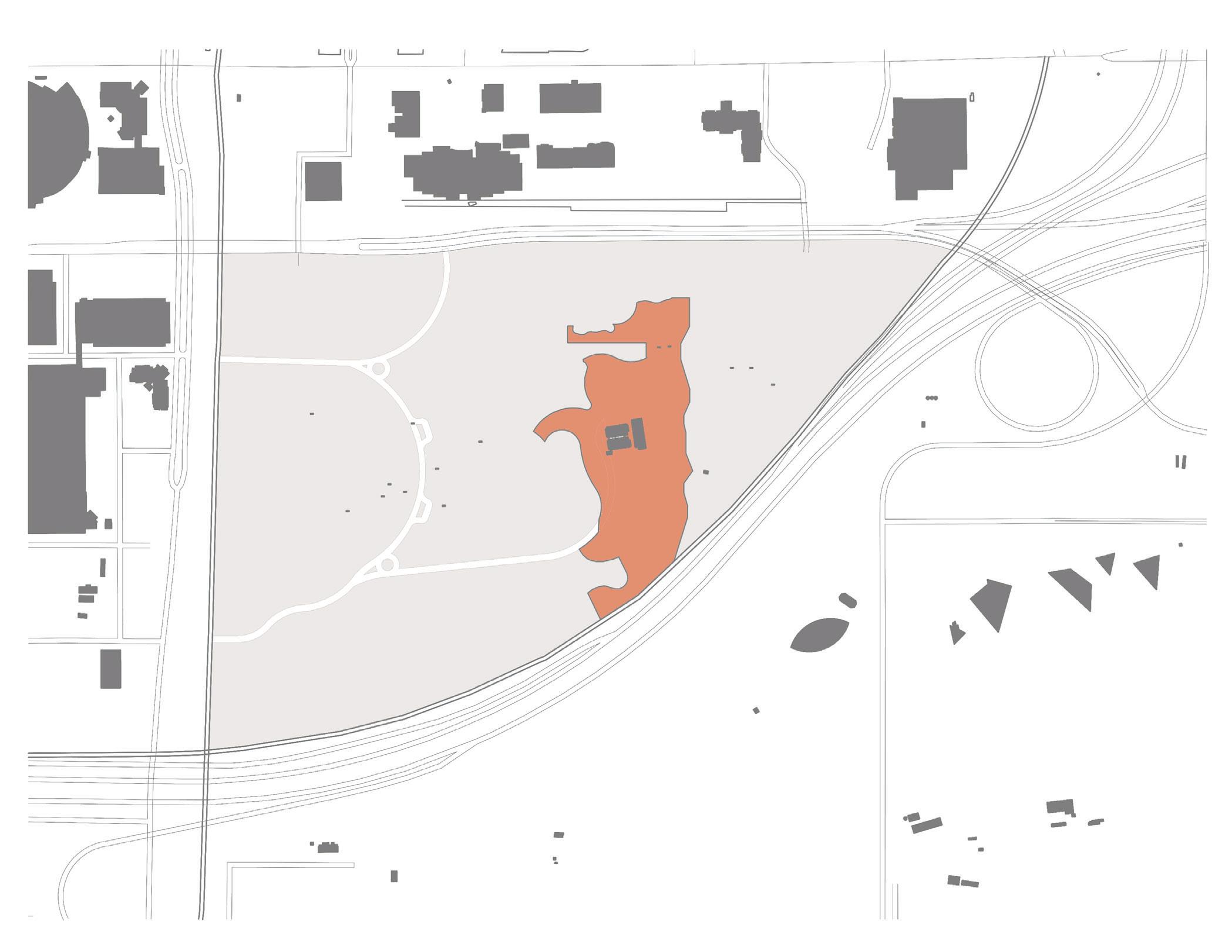 The location of the site is in the heart of OKC, where there are other sports amenities nearby. The site is proposed for a soccer stadium, and our design studio class was tasked with designing the surrounding area. I have decided to add a go-kart track to this area to introduce a bit of speed and excitement. Additionally, the part I have designed features a shing pond situated on top of a constructed wetland. The wetland is built over an existing ditch that collects stormwater. This part of the site also includes an existing building that used to be a silo but is now a gym. Therefore, this area is ideal for recreational activities.