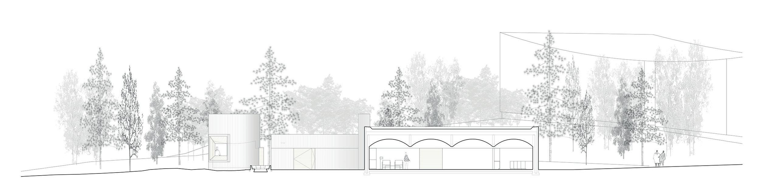 El proyecto de la sauna es una continuación de la experiencia iniciada con el museo Gösta Serlachius, un proyecto que se une a una preexistencia situada en medio de un gran bosque finlandés. El recorrido paisajístico que lo acompaña consiste en una suma de espacios y momentos siempre abrazados por el paisaje y la naturaleza.