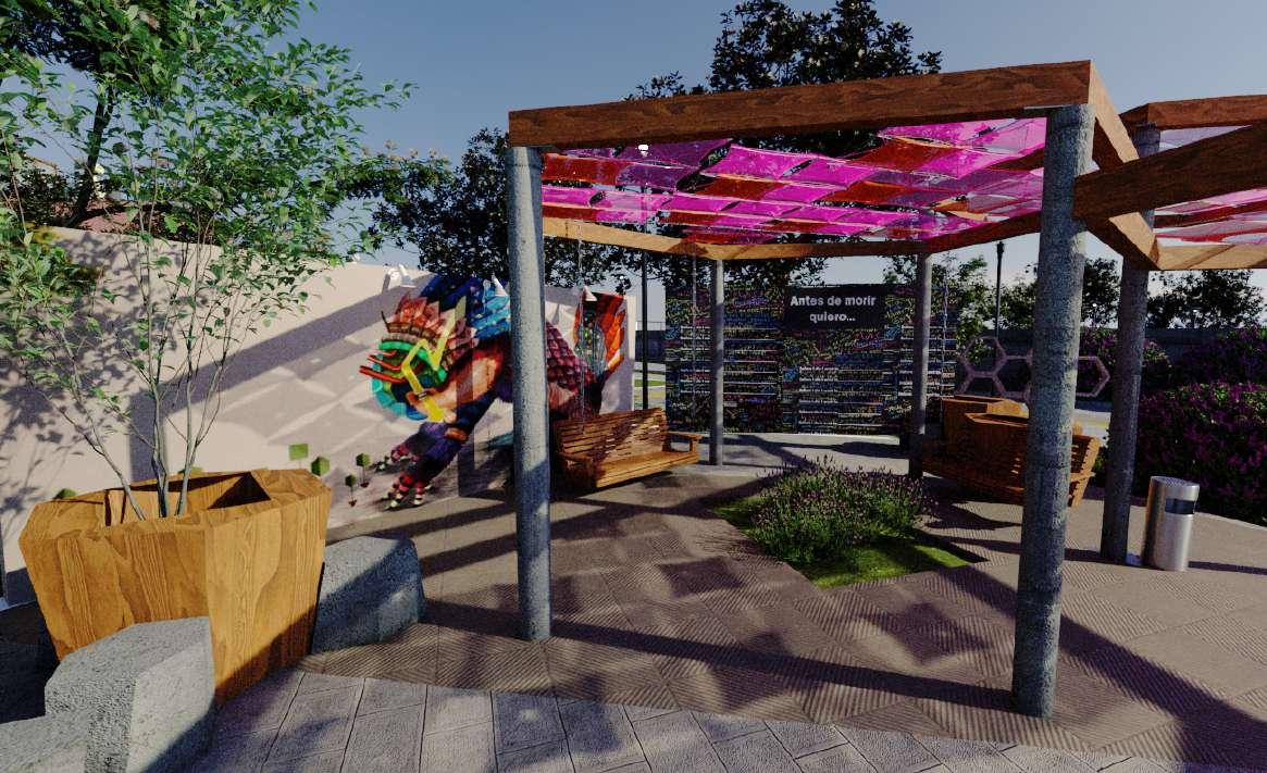 El parque colindante con Av 5 de Febrero, vialidad más importante de Querétaro, explora los límites de la espacialidad, donde los espacios son recreativos, identitarios y de conexión para los peatones.