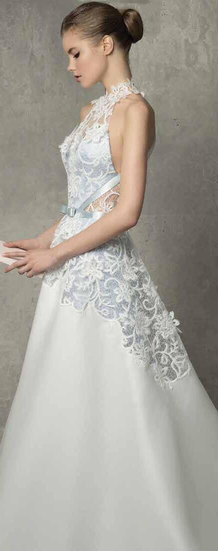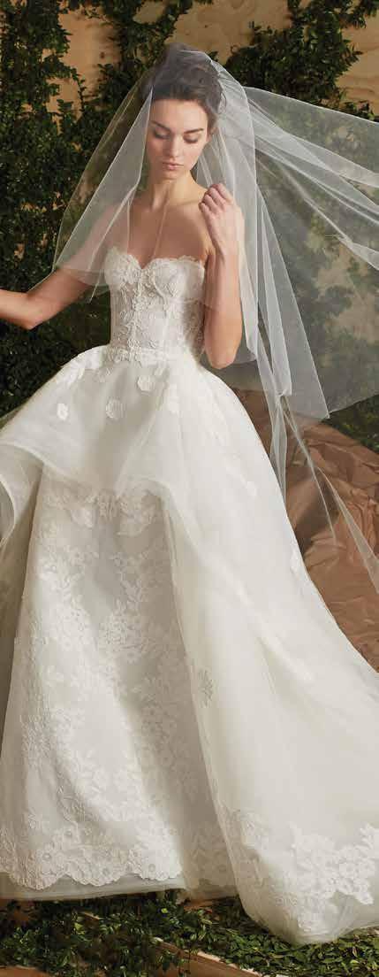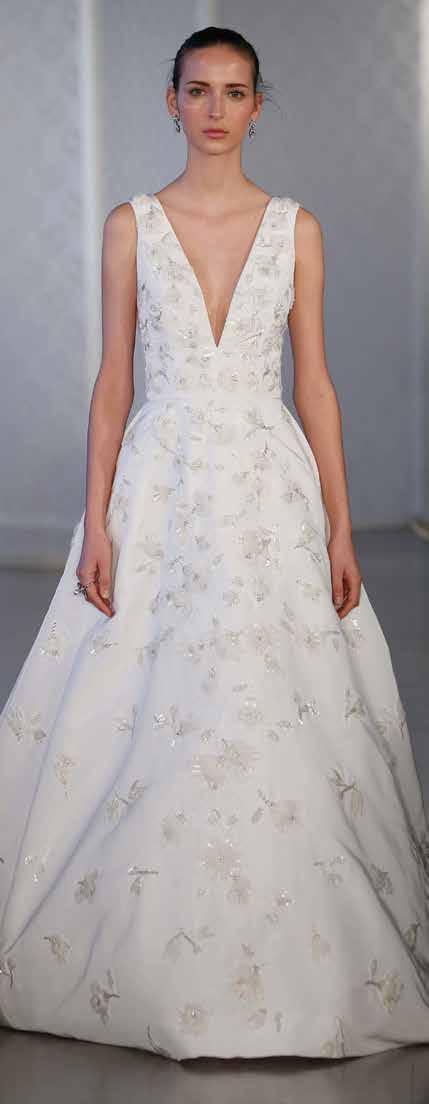 El diseño nupcial de Carolina Herrera se distingue por ser a la vez clásico y femenino. En su colección de primavera, inspirada en los detalles de las siluetas del “viejo mundo” con un giro moderno, podemos ver hermosos vestidos de encaje y sin duda la diseñadora logra agregar un toque de drama con la aplicación de faldillas desmontables.