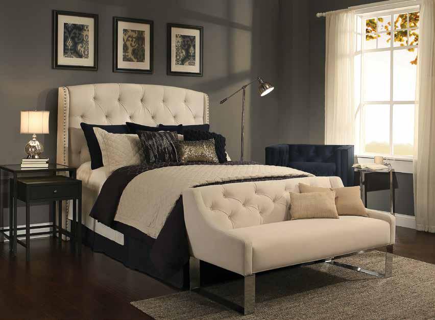 mucho glamour a una habitación. También se utilizan los que están decorados con remaches en diferentes tamaños, o bien capitoneados le dan un toque de elegancia, que te transporta a la época victoriana la cual sigue en tendencia este 2017. Así mismo, las bancas tapizadas como pie de cama, llegan para darle a una habitación, la sofisticación y buen gusto a tu espacio, imponiendo tendencia este 2017.