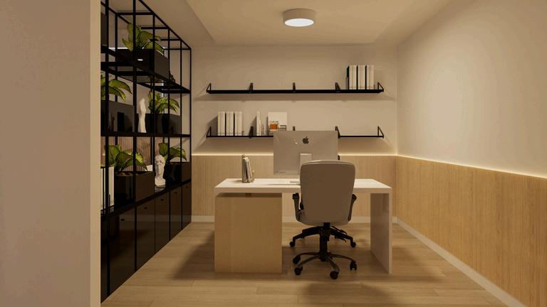 Este proyecto se desarrolla en un terreno de 90 m², con una distribución ya definida que incluye los baños. La intervención consistió en añadir estilo y mobiliario, utilizando divisores para organizar ciertos espacios. Al tratarse de una oficina, se consideraron áreas clave como recepción, sala de espera, oficina privada, área modular, sala de reuniones ,un pequeño almacén y kitchenette. La propuesta se enfocó en la funcionalidad y el uso de tonalidades neutras, con el objetivo de resaltar los colores propios de la identidad visual de la marca
