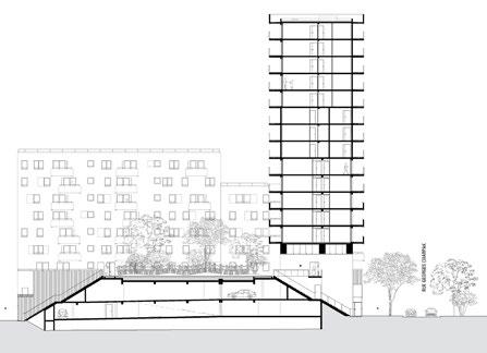 Le projet se compose de deux équerres espacées générant des perméabilités en coeur d’ilot