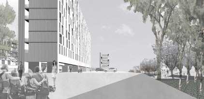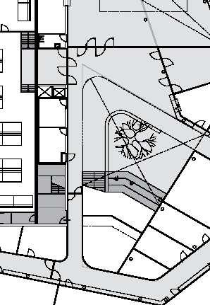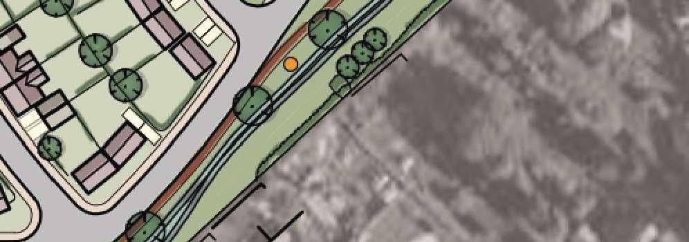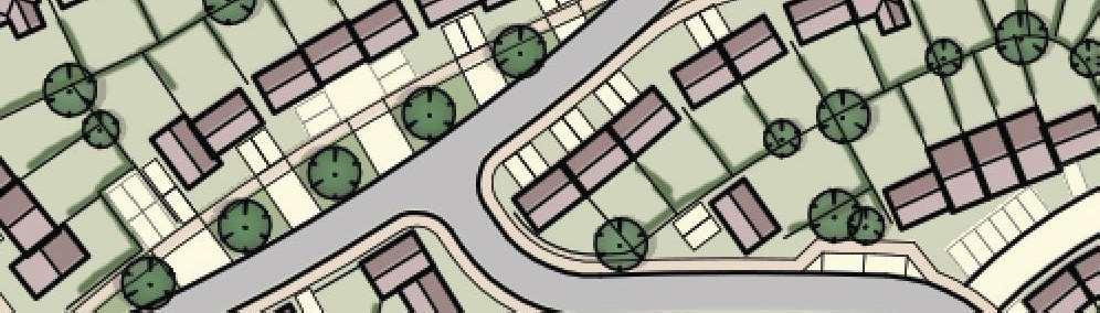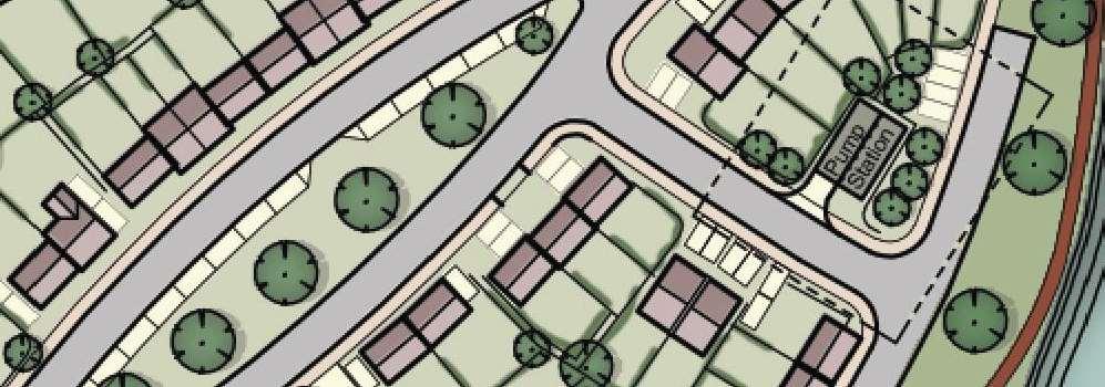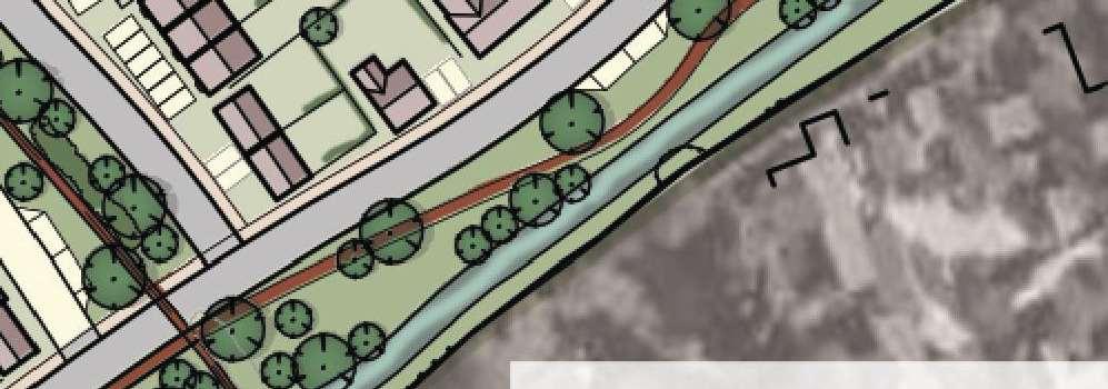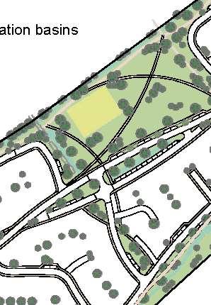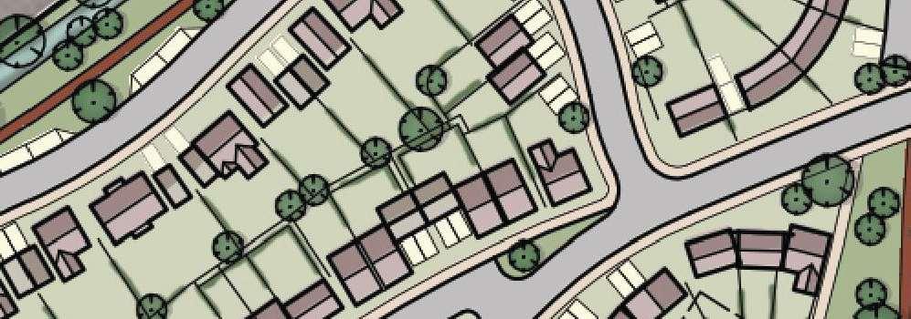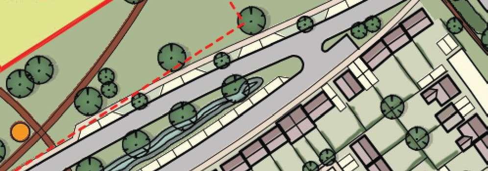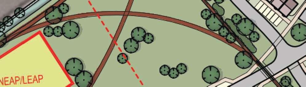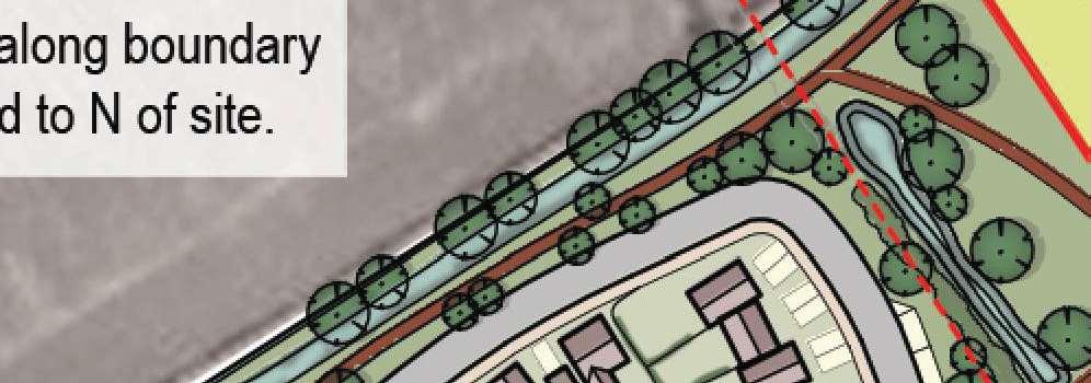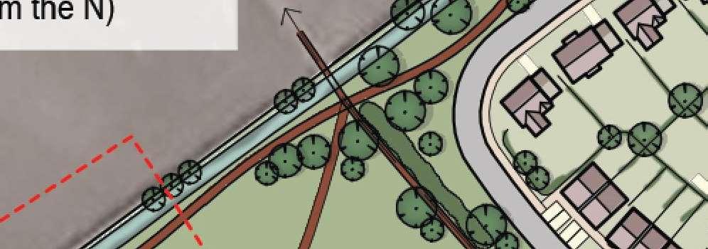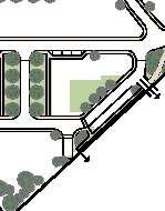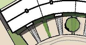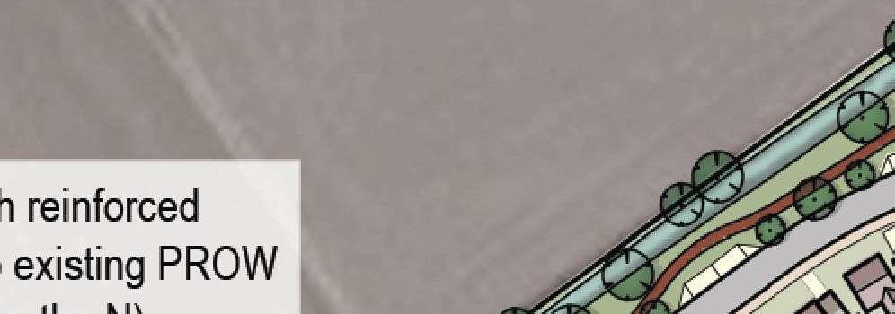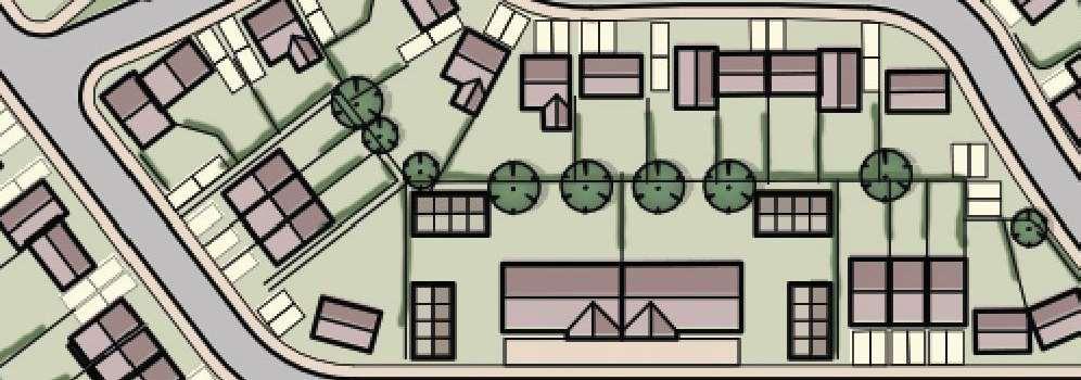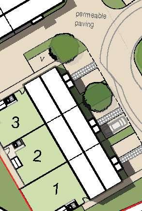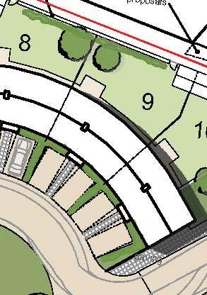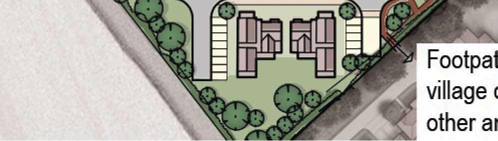 The crescent creates a public area concentrating activity into the centre of the site and presents aclear link to the village Green The widened access allows for planting and improves the entrance to the footpath creating an attractivecorner to The Green and a welcoming entrance to the proposal site.