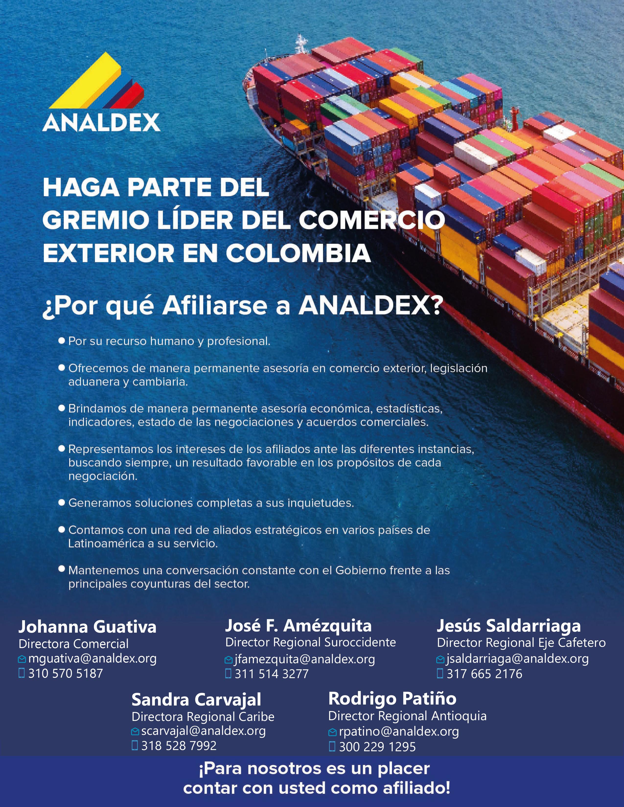 ca tiempos y costos, y una agenda agresiva de admisibilidad que abra mercados y mantenga los ya abiertos. Sin esta base, ninguna concesión arancelaria se traducirá en más contenedores saliendo de Colombia.