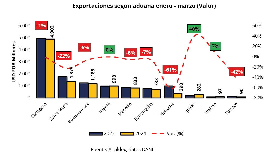 Las exportaciones no minero-energéticas se han reactivado durante los primeros meses de 2024, en parte por el buen comportamiento de las exportaciones agroindustriales. Sin embargo, se deben tener incentivos para que estas ventas tengan un crecimiento sostenido en el tiempo. No basta con una reducción de la tasa de interés del Banco de la República, es necesario que las exportaciones no minero-energéticas sean un jalonador de la economía. Allí se han tomado algunas acciones de apoyo por parte del Estado, pero más allá
