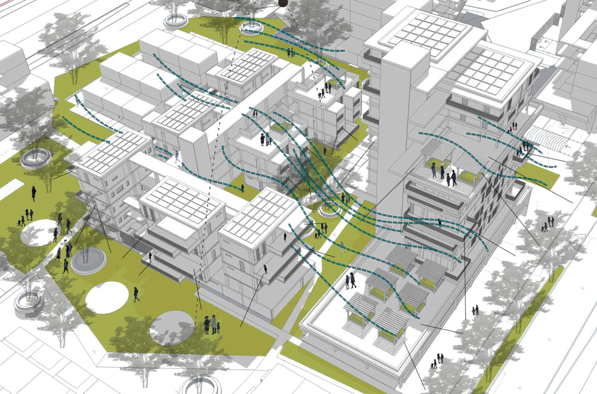 The project is based on offering housing at different levels, always seeking integration among citizens. The architectural proposal is created from the analysis of the flow of essential resources: water, energy and food. For this, the architectural composition is proposed according to the route for the protection of houses from heat and at the same time the use of radiation for the generation of photovoltaic solar energy.