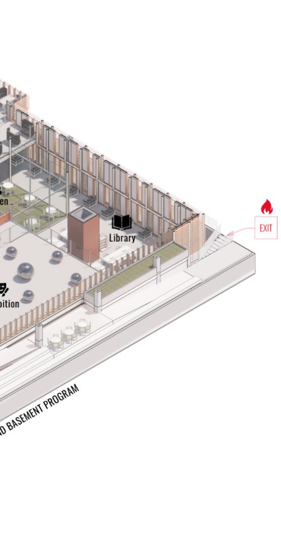 Der architektonische Vorschlag zielt darauf ab, die Gemeinschaft für die urbane Widerstandsfähigkeit in diesen verlassenen Gebieten durch die Wiederaneignung und Bedeutung öffentlicher Stadtgebiete zu fördern. Das Projekt ist von allen Fronten offen. Die schräge Gestaltung in Längs- und Querrichtung lädt Fussgängerinnen und Fussgänger zur inneren gesellschaftlichen Teilhabe ein.