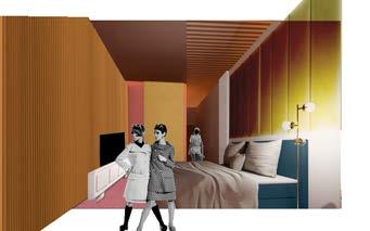 Floors are comprised by four residential units, where each may be split into two. The result is one unit that acts as an apartment or AirBnB, and one that functions similar to a conventional hotel room. By separating the two, hotel and apartment/ AirBnB through a flexible partition, it opens the opportunity of not only having spaces to rent out, but a residential unit plus an auxiliary unit, where family or friends could move in, which can open the possibility for a tight knit community to populate the floors of the building.