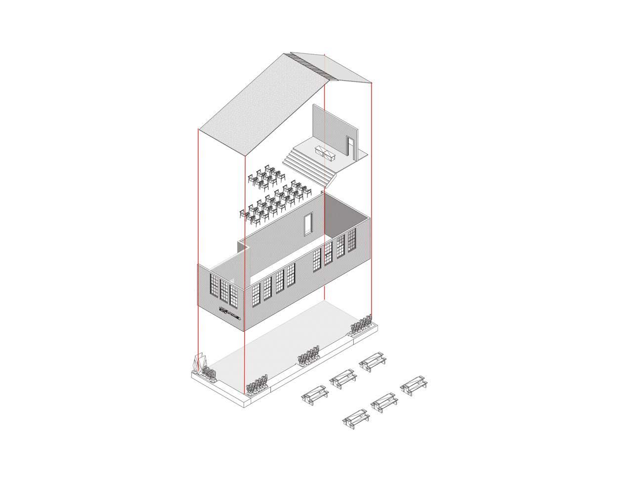 comprised of outside gardens along with seating to proand pleasant place to gather. The project includes entrance, referring back to the school’s long extelight. This will allow people to meet and interact as space. The interior was kept minimal, respecting hierarchy of the Tankersley School on the site and letChapel exist only as a partner. This interior contains a seating facing an altar. A small space dedicated to storbathrooms is placed towards the back of the building.
